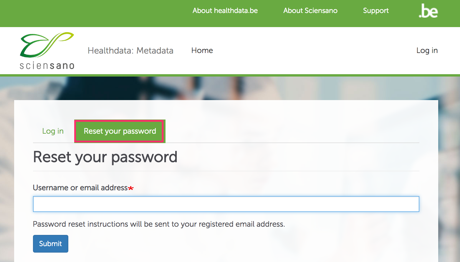 Metadata.healthdata.be is an application intended to be used by a registered users (data collection managers, collaborators and coordinators) and requires an account.