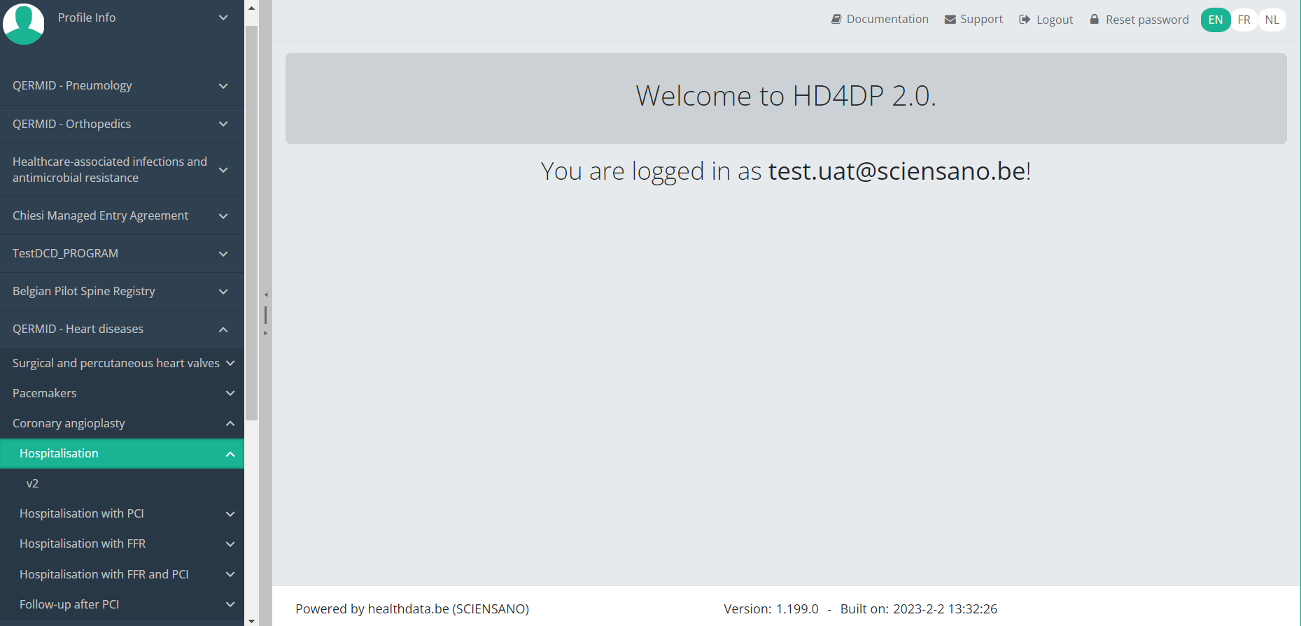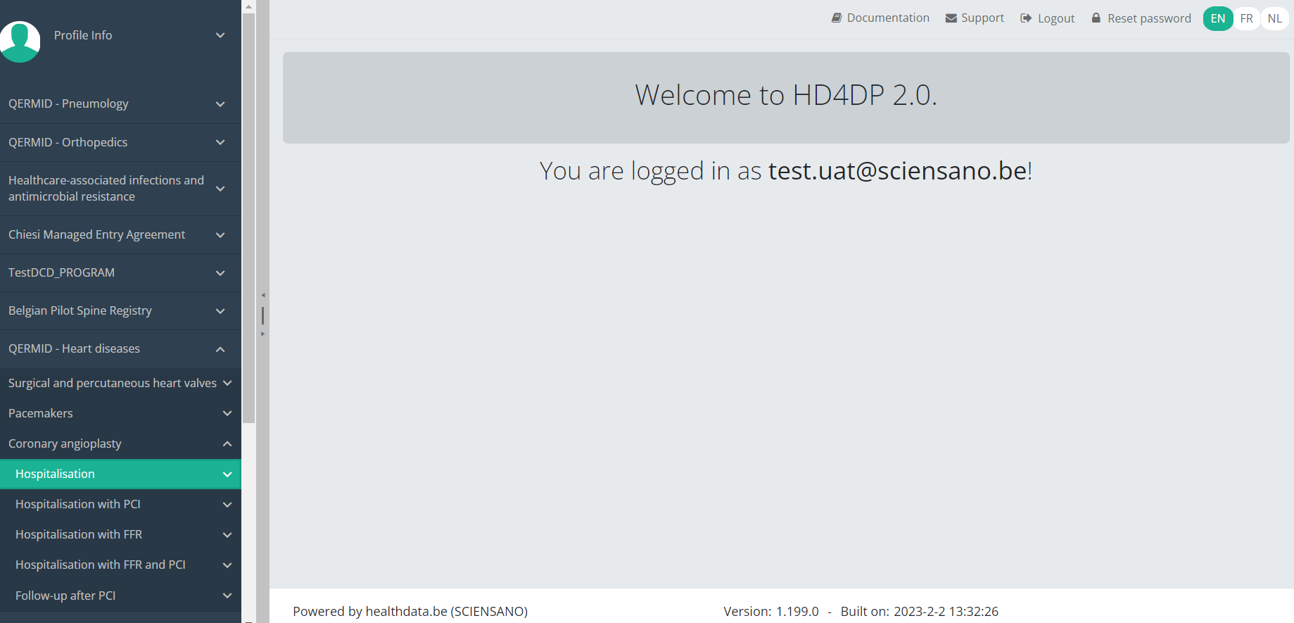 This documentation is being updated regularly. We try to provide as correct, complete and clear as possible information on these pages. Nevertheless, if you see anything in the documentation that is not correct, does not match your experience or requires further clarification, please create a support ticket via our portal (https://healthdatabe.atlassian.net/servicedesk/customer/portals) or send us an e-mail via support.healthdata@sciensano.be to report this documentation issue. Please, do not forget to mention the URL or web address of the page with the documentation issue. We will then adjust the documentation as soon as possible. Thank you!