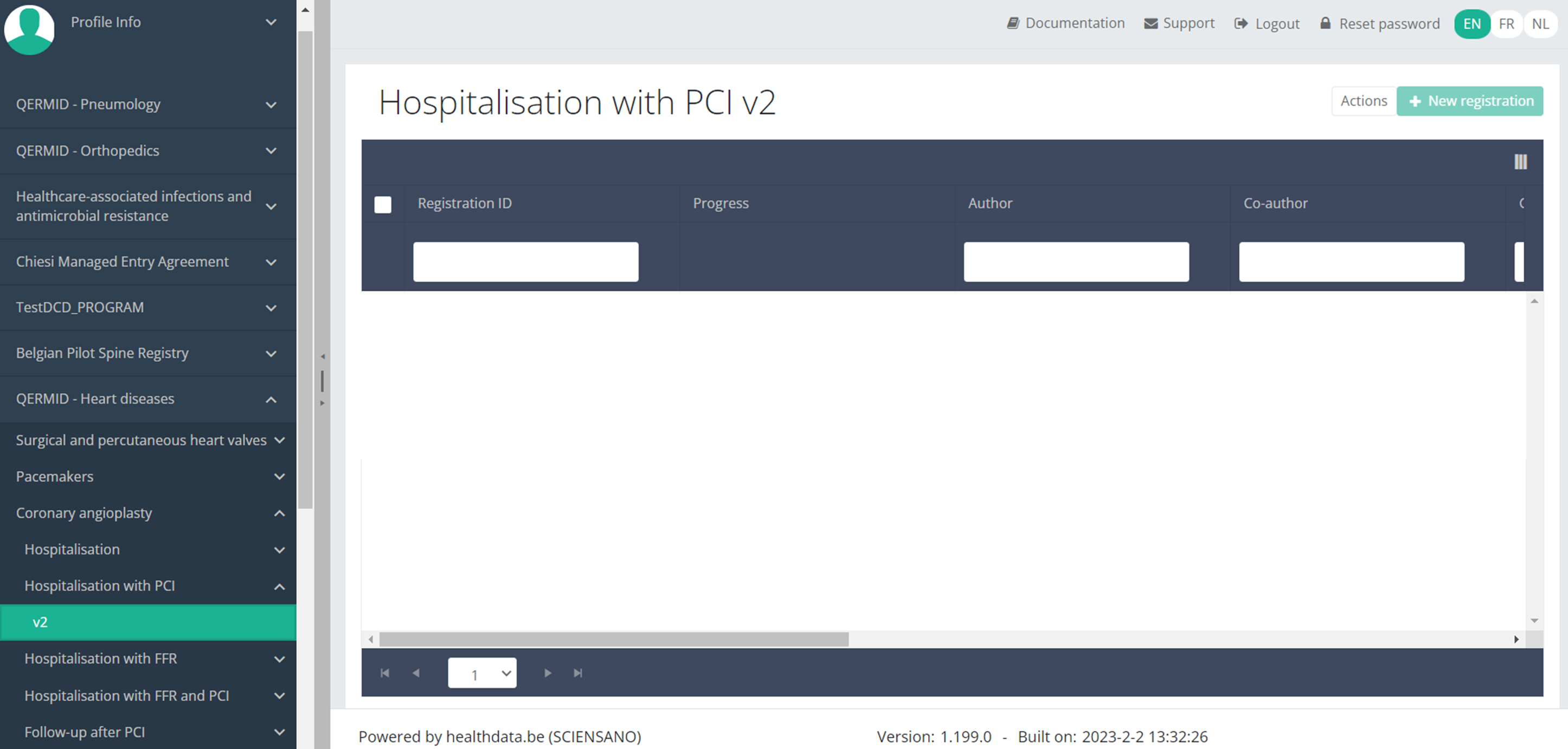 Submit an ANGIO "Hospitalisation with PCI" registration