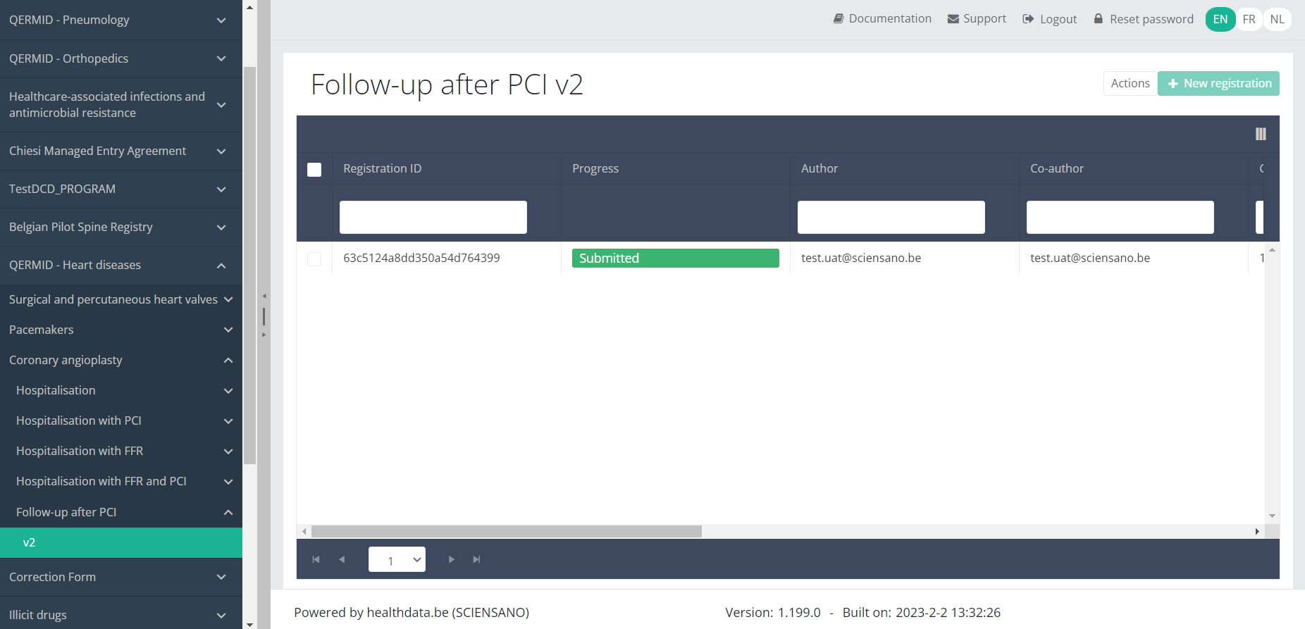 Submitted: Registration has been submitted and sent to Healthdata.be.
