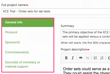 When entering project information you should try to provide as much information as possible by filling-in as much fields as possible.