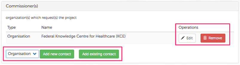 To add a contact, first select a Contact Type (Organisation or Person) from the drop-down, then click on Add new contact button to add a new contact or click on Add existing contact to search and add a contact which already exists in the system.