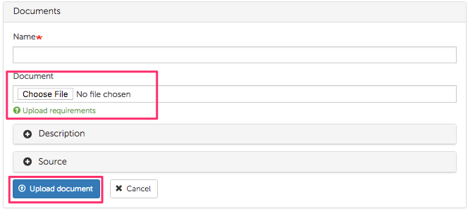 There is also a possibility to upload and attach a file / document to the approval by clicking on Add new Document and completing the fields: