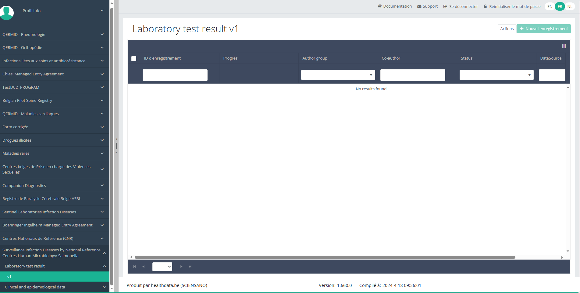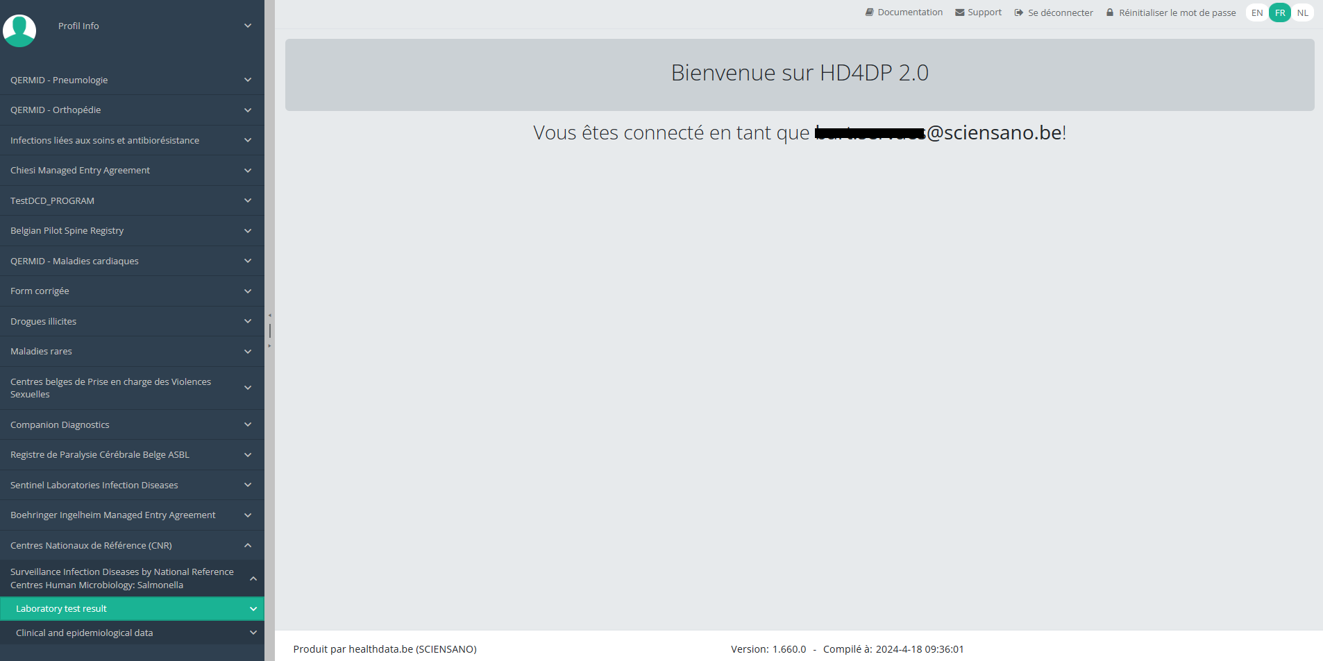 Cette documentation est encore en construction. Nous essayons de présenter les informations aussi correctes, complètes et aussi claires que possible. Cependant, si vous voyez un élément dans la documentation qui est incorrect, ne correspond pas à votre expérience ou nécessite des éclaircissements supplémentaires, veuillez créer ticket support via notre portail (https://healthdatabe.atlassian.net/servicedesk/customer/portals) ou nous envoyer un e-mail à support.healthdata@sciensano.be pour signaler ce problème de documentation. N'oubliez pas d'inclure l'URL ou l'adresse Web de la page avec le problème de documentation. Nous ajusterons ensuite la documentation. Merci!