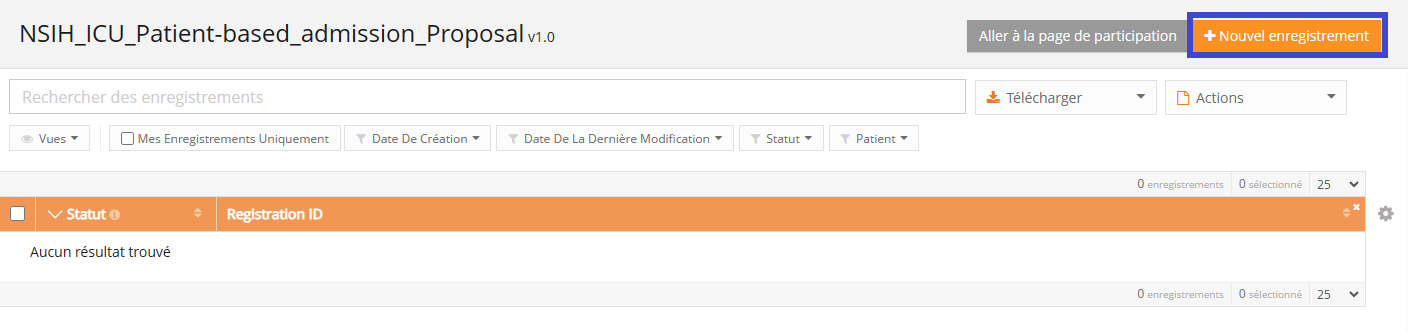 - Cliquez sur le bouton « Nouvel enregistrement »