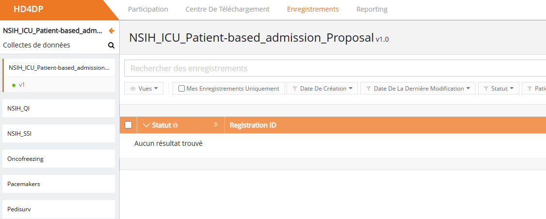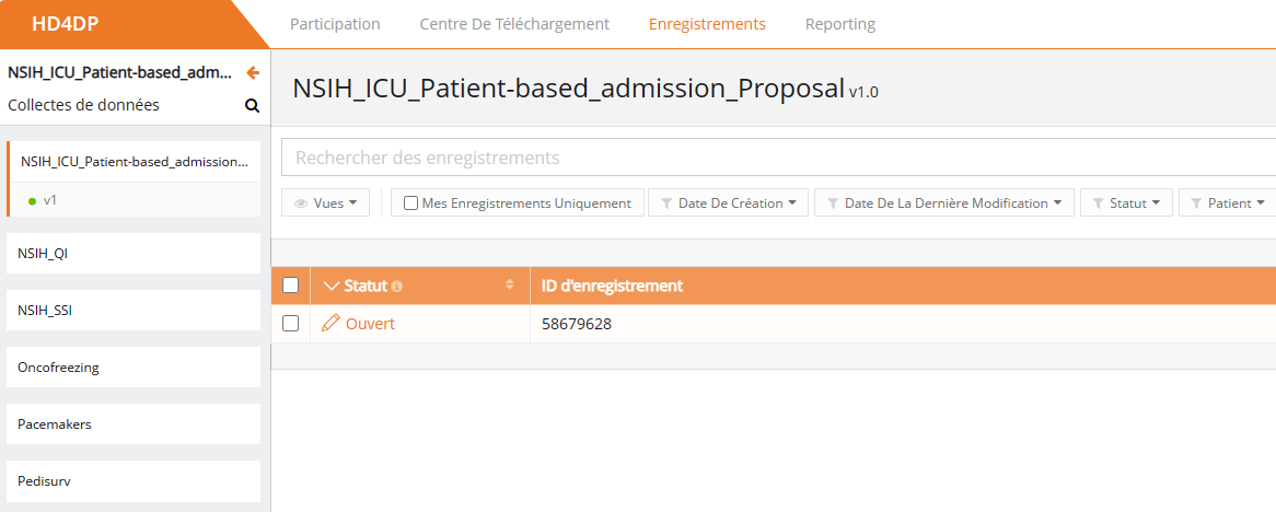Créer un enregistrement dans HD4DP v1L'onglet Enregistrements conduit l'utilisateur aux registres existants. Un utilisateur peut commencer à collecter des données à partir de cet onglet.