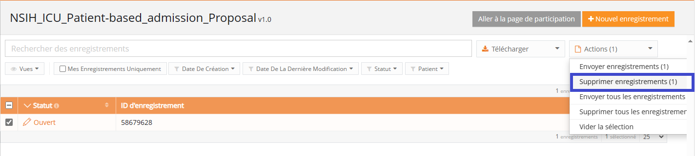 - Sélectionnez l'/les enregistrement(s) que vous souhaitez supprimer