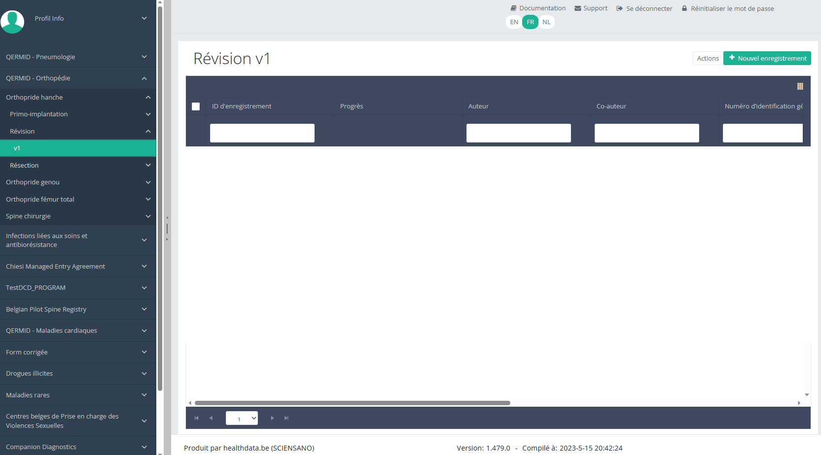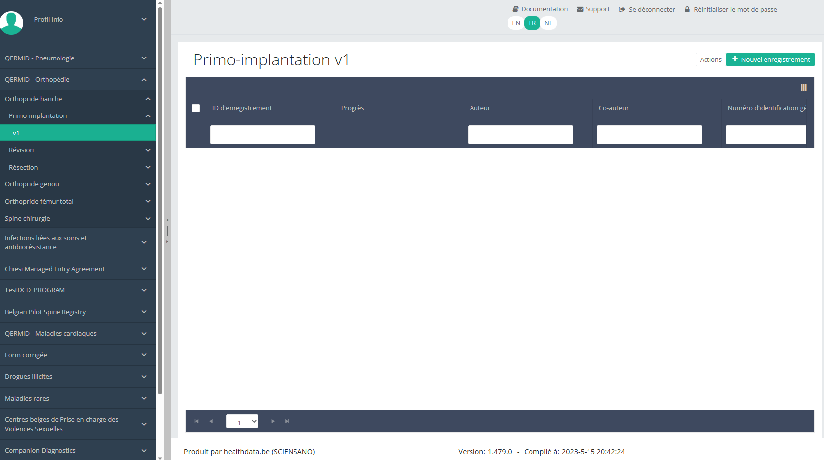 Enregistrement électronique de la qualité des actes, implants et dispositifs médicaux : Données d'identification des prothèses orthopédiques : HancheBienvenue sur les pages de documentation technique du projet « Enregistrement électronique de la qualité des actes, implants et dispositifs médicaux : Données d'identification des prothèses orthopédiques : Hanche », fourni par le service healthdata.be (Sciensano).