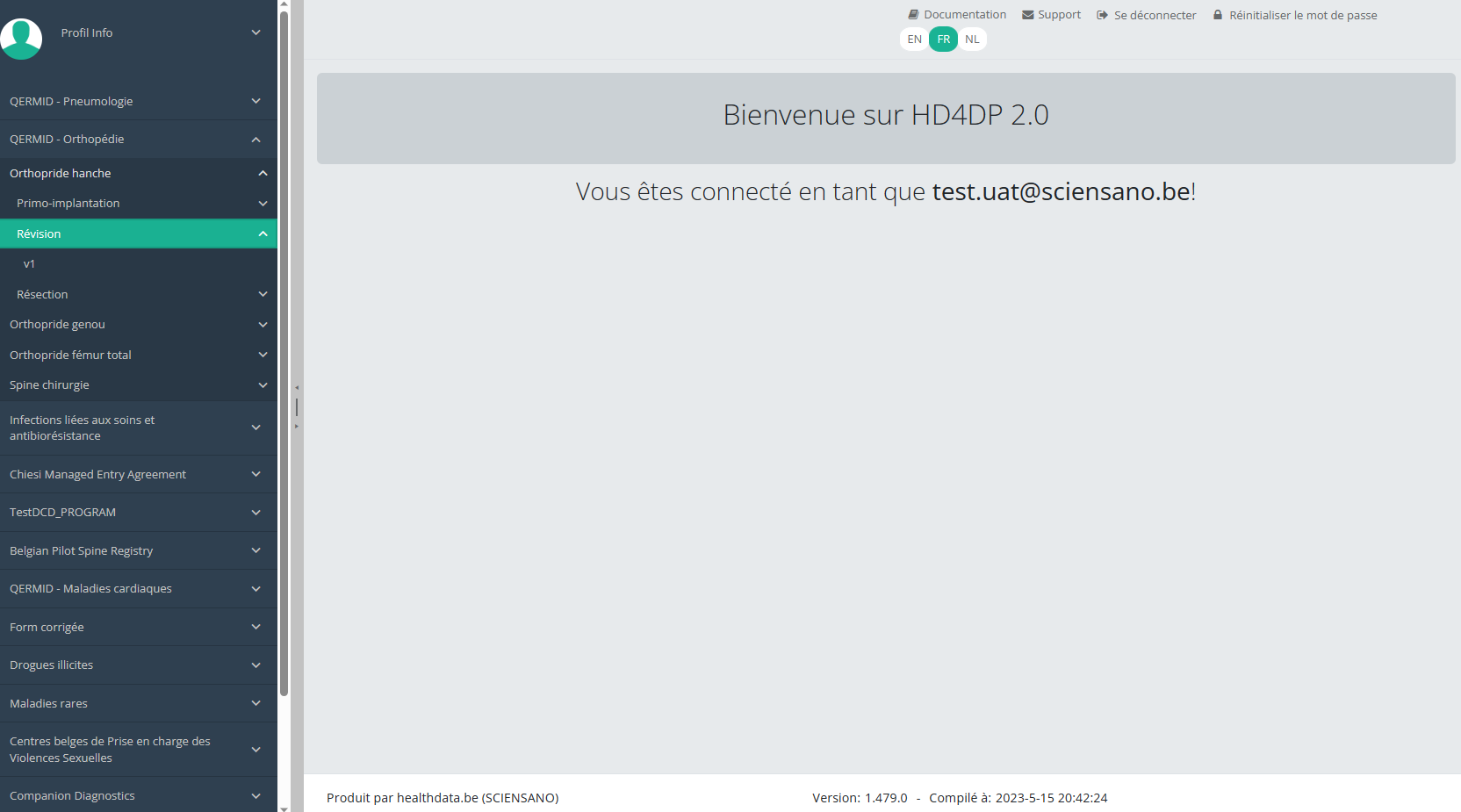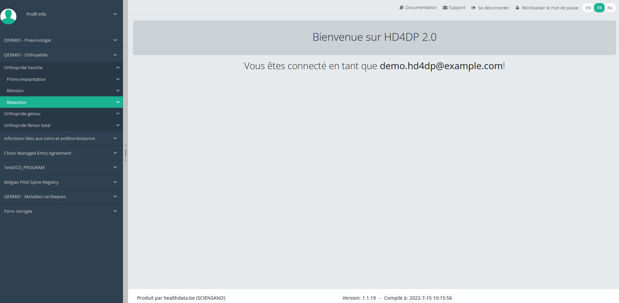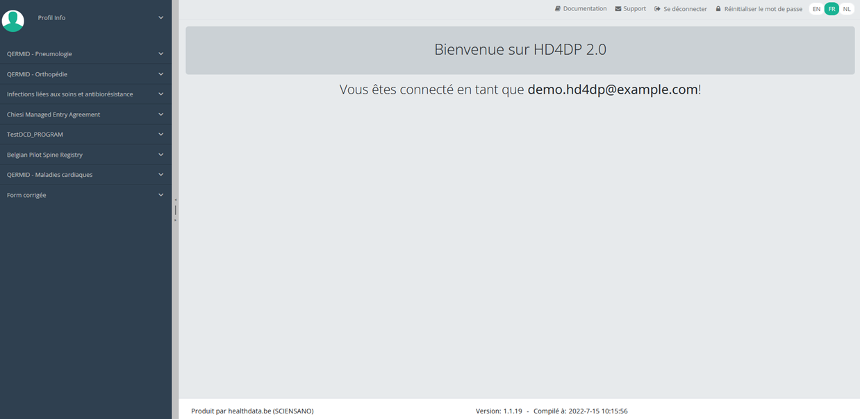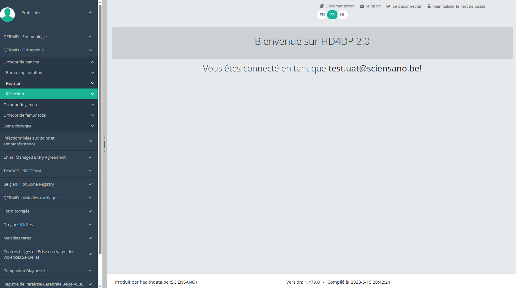 Cette documentation est encore en construction. Nous essayons de présenter les informations aussi correctes, complètes et aussi claires que possible. Cependant, si vous voyez un élément dans la documentation qui est incorrect, ne correspond pas à votre expérience ou nécessite des éclaircissements supplémentaires, veuillez créer ticket support via notre portail (https://healthdatabe.atlassian.net/servicedesk/customer/portals) ou nous envoyer un e-mail à support.healthdata@sciensano.be pour signaler ce problème de documentation. N'oubliez pas d'inclure l'URL ou l'adresse Web de la page avec le problème de documentation. Nous ajusterons ensuite la documentation. Merci!
