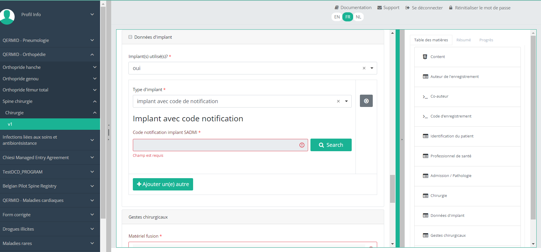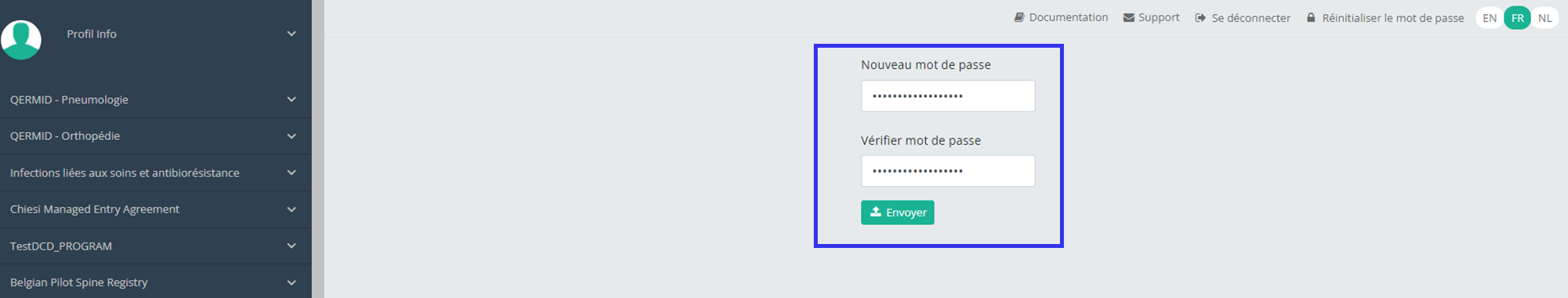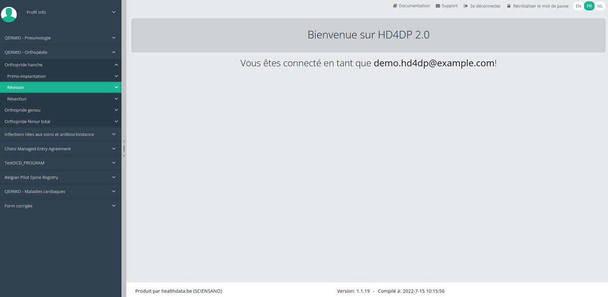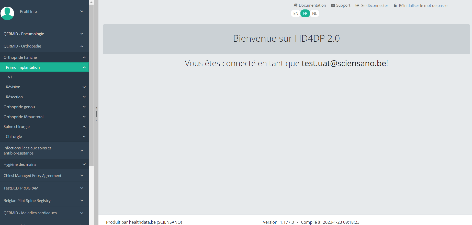 Cette documentation est encore en construction. Nous essayons de présenter les informations aussi correctes, complètes et aussi claires que possible. Cependant, si vous voyez un élément dans la documentation qui est incorrect, ne correspond pas à votre expérience ou nécessite des éclaircissements supplémentaires, veuillez créer ticket support via notre portail (https://healthdatabe.atlassian.net/servicedesk/customer/portals) ou nous envoyer un e-mail à support.healthdata@sciensano.be pour signaler ce problème de documentation. N'oubliez pas d'inclure l'URL ou l'adresse Web de la page avec le problème de documentation. Nous ajusterons ensuite la documentation. Merci!