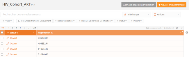 Créer un enregistrement dans HD4DP v1L'onglet Enregistrements conduit l'utilisateur aux registres existants. Un utilisateur peut commencer à collecter des données à partir de cet onglet.
