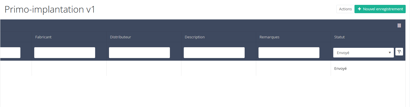 L'enregistrement envoyé reste présent dans le tableau récapitulatif, mais son statut est passé de « Ouvert » à « Envoyé ».