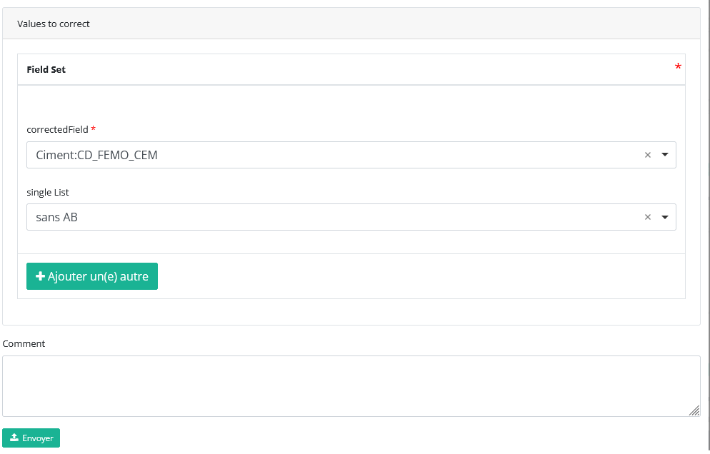 Lorsque vous avez terminé de remplir l'enregistrement de la correction, vous pouvez ajouter un commentaire et envoyer la correction en cliquant sur le bouton « envoyer ».