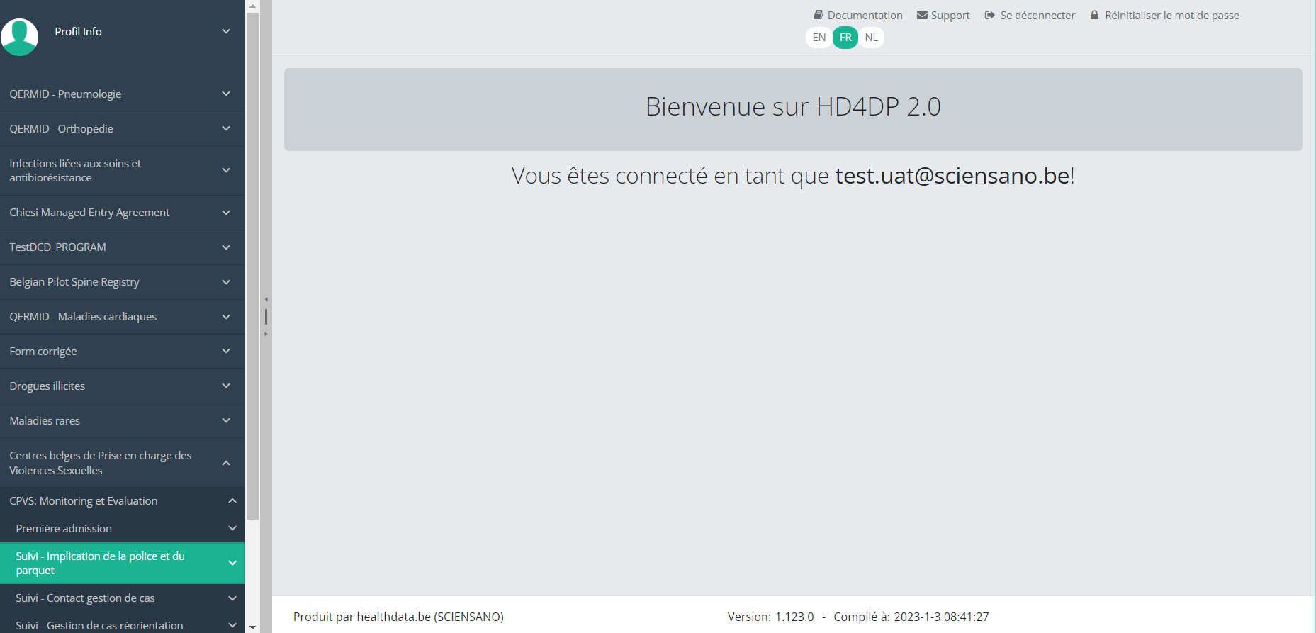 Cette documentation est encore en construction. Nous essayons de présenter les informations aussi correctes, complètes et aussi claires que possible. Cependant, si vous voyez un élément dans la documentation qui est incorrect, ne correspond pas à votre expérience ou nécessite des éclaircissements supplémentaires, veuillez créer ticket support via notre portail (https://healthdatabe.atlassian.net/servicedesk/customer/portals) ou nous envoyer un e-mail à support.healthdata@sciensano.be pour signaler ce problème de documentation. N'oubliez pas d'inclure l'URL ou l'adresse Web de la page avec le problème de documentation. Nous ajusterons ensuite la documentation. Merci!