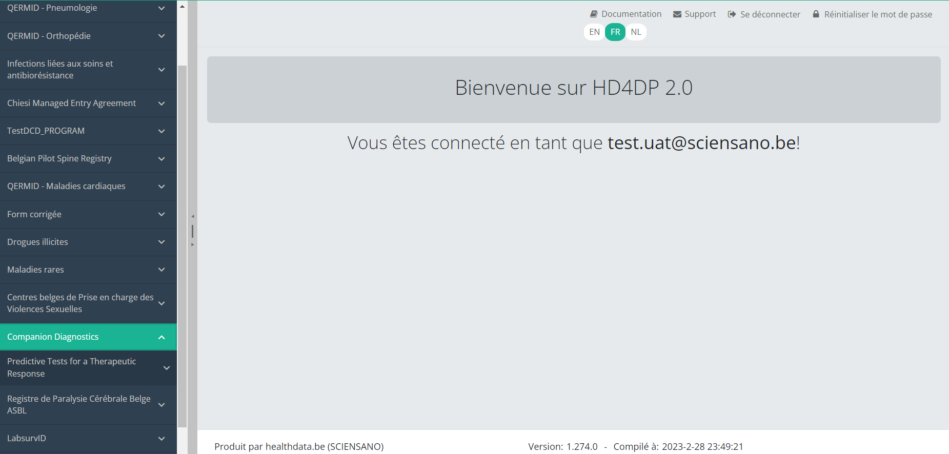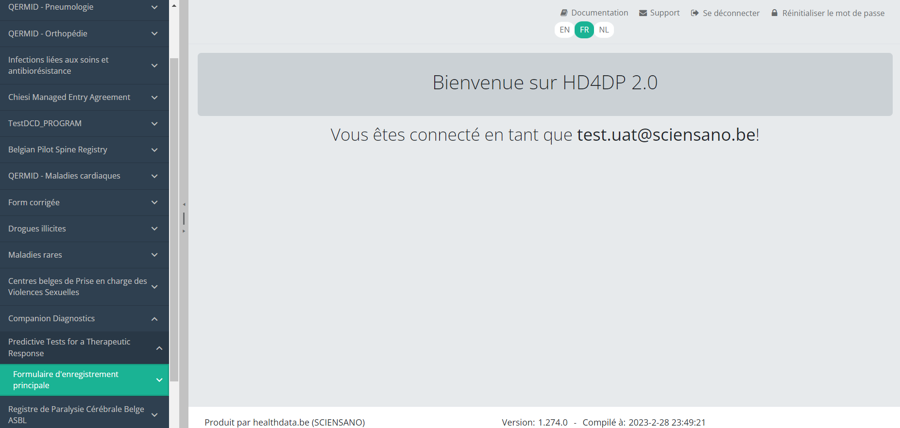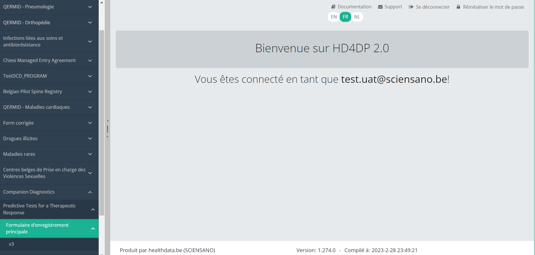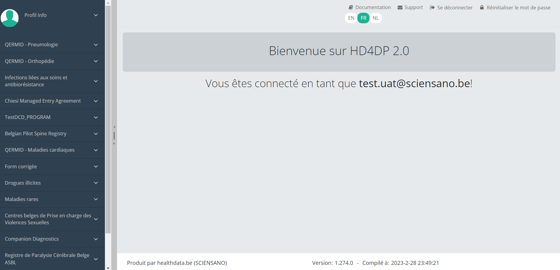 Cette documentation est encore en construction. Nous essayons de présenter les informations aussi correctes, complètes et aussi claires que possible. Cependant, si vous voyez un élément dans la documentation qui est incorrect, ne correspond pas à votre expérience ou nécessite des éclaircissements supplémentaires, veuillez créer ticket support via notre portail (https://healthdatabe.atlassian.net/servicedesk/customer/portals) ou nous envoyer un e-mail à support.healthdata@sciensano.be pour signaler ce problème de documentation. N'oubliez pas d'inclure l'URL ou l'adresse Web de la page avec le problème de documentation. Nous ajusterons ensuite la documentation. Merci!
