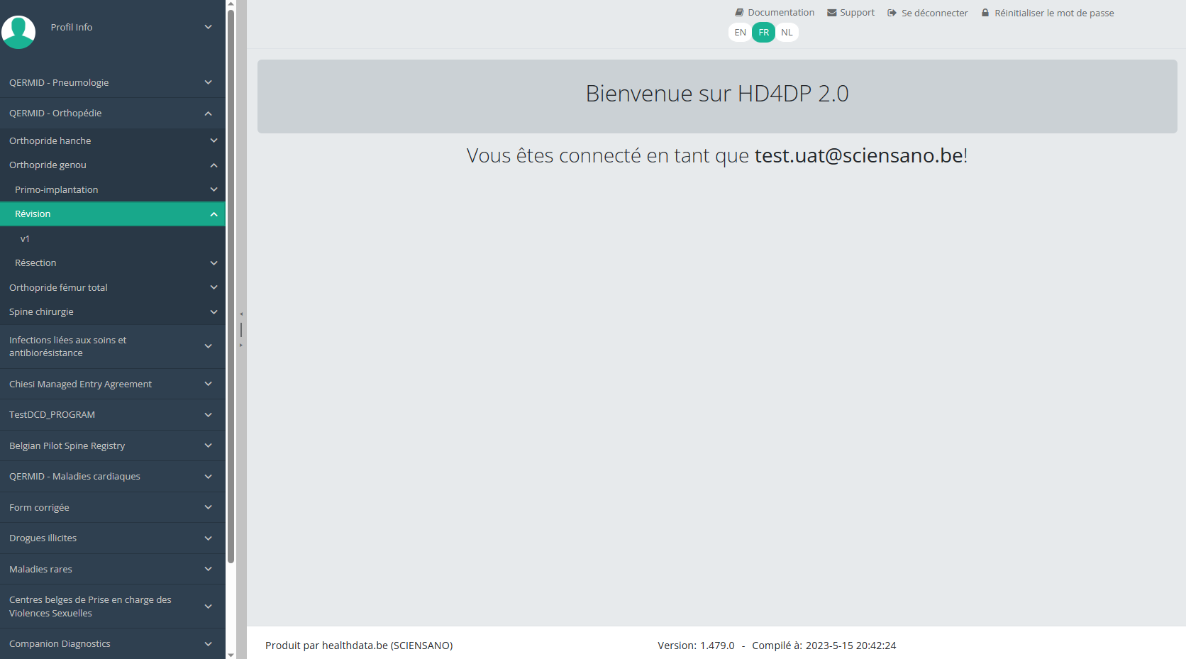Cette documentation est encore en construction. Nous essayons de présenter les informations aussi correctes, complètes et aussi claires que possible. Cependant, si vous voyez un élément dans la documentation qui est incorrect, ne correspond pas à votre expérience ou nécessite des éclaircissements supplémentaires, veuillez créer ticket support via notre portail (https://healthdatabe.atlassian.net/servicedesk/customer/portals) ou nous envoyer un e-mail à support.healthdata@sciensano.be pour signaler ce problème de documentation. N'oubliez pas d'inclure l'URL ou l'adresse Web de la page avec le problème de documentation. Nous ajusterons ensuite la documentation. Merci!