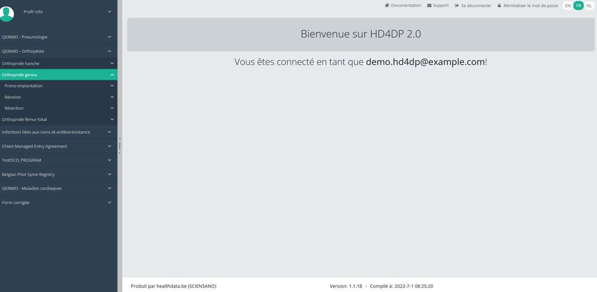 Description générale de l'application HD4DP v2La version 2.x Local de HD4DP est un système de saisie électronique des données (electronic data capture - EDC) : un système informatisé conçu pour la collecte de données cliniques au format électronique en vue d'une utilisation dans la recherche soutenant la politique de santé publique. HD4DP (Health Data for Data providers) remplace la méthodologie traditionnelle de collecte de données sur papier et la prolifération de sites web pour rationaliser la collecte de données et accélérer le temps d'analyse et de reporting.