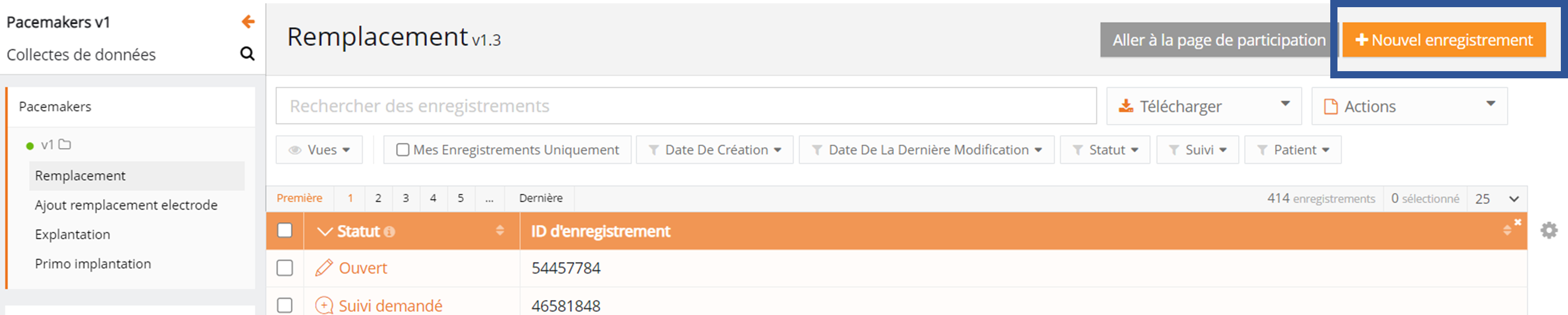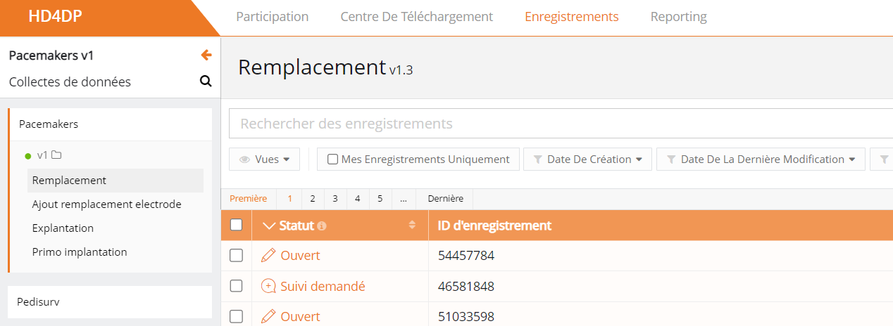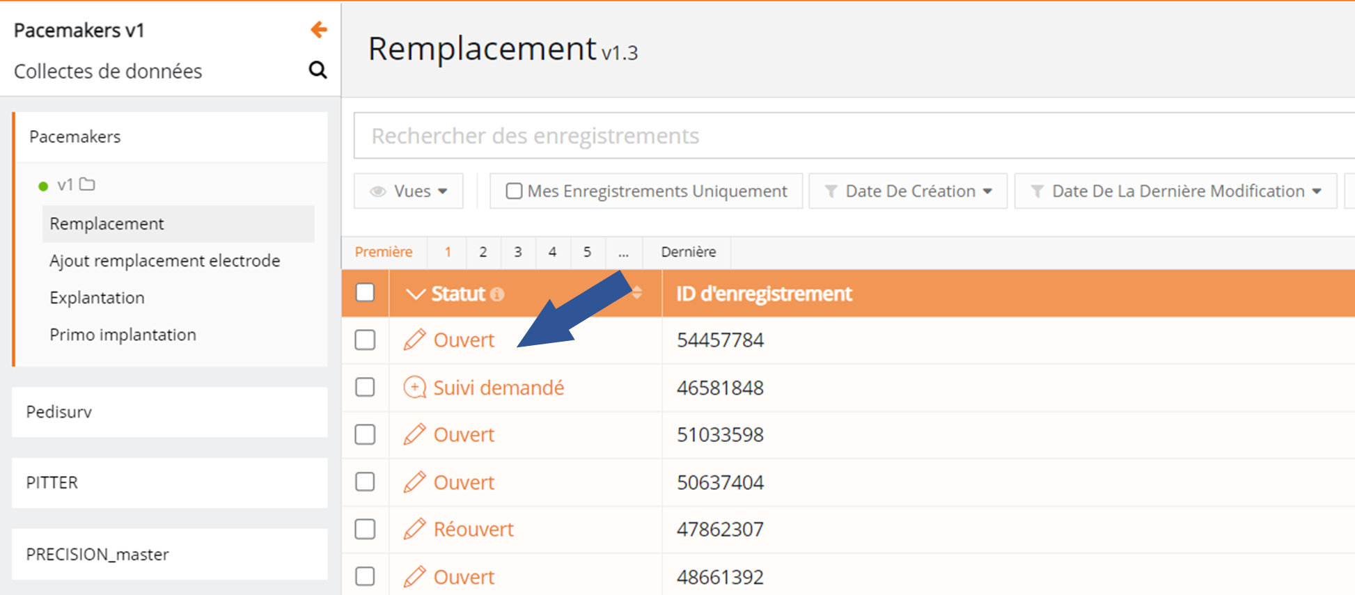 - Un enregistrement peut être « Réouvert » si nécessaire, tant que le statut de l'enregistrement est « Envoyé ».
