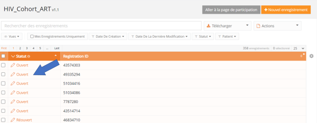 • Sauvegardez l'enregistrement temporairement si nécessaire. Le statut de l'enregistrement sera « Ouvert » pour les enregistrements sauvegardés
