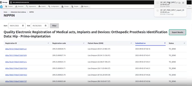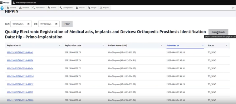 On this page we describe how the NIPPIN reports can be exported in the Self-Service Portal application.