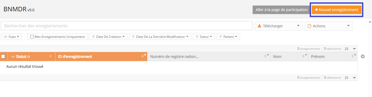 - Cliquez sur le bouton « Nouvel enregistrement »