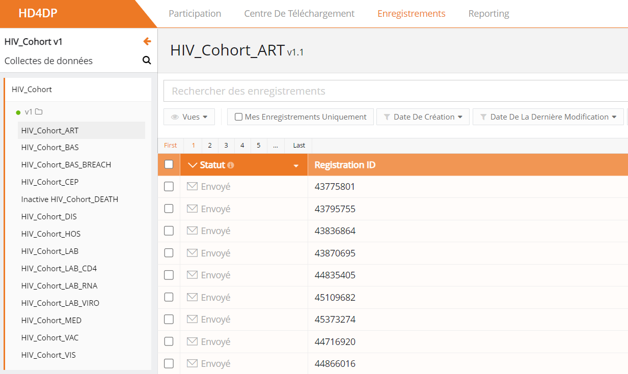 Dès qu'un enregistrement est envoyé, la colonne « statut de confirmation » affiche « Pending ».