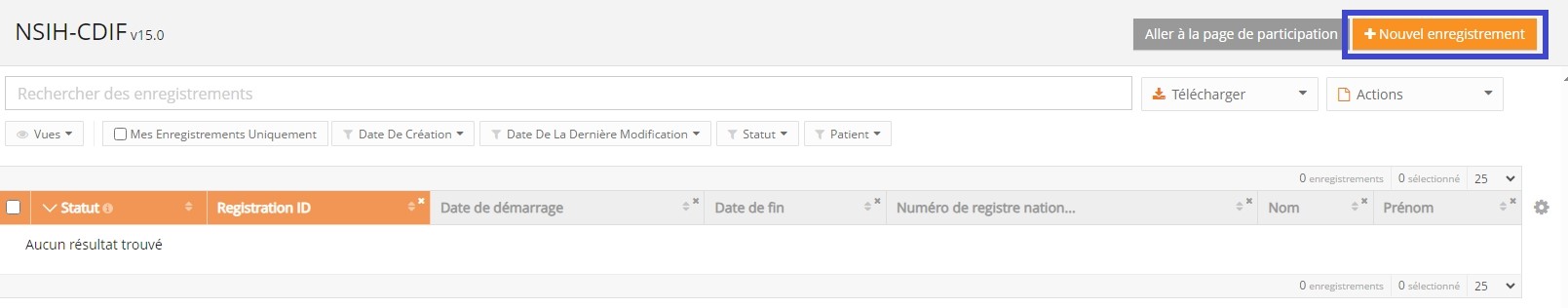 - Cliquez sur le bouton « Nouvel enregistrement ».