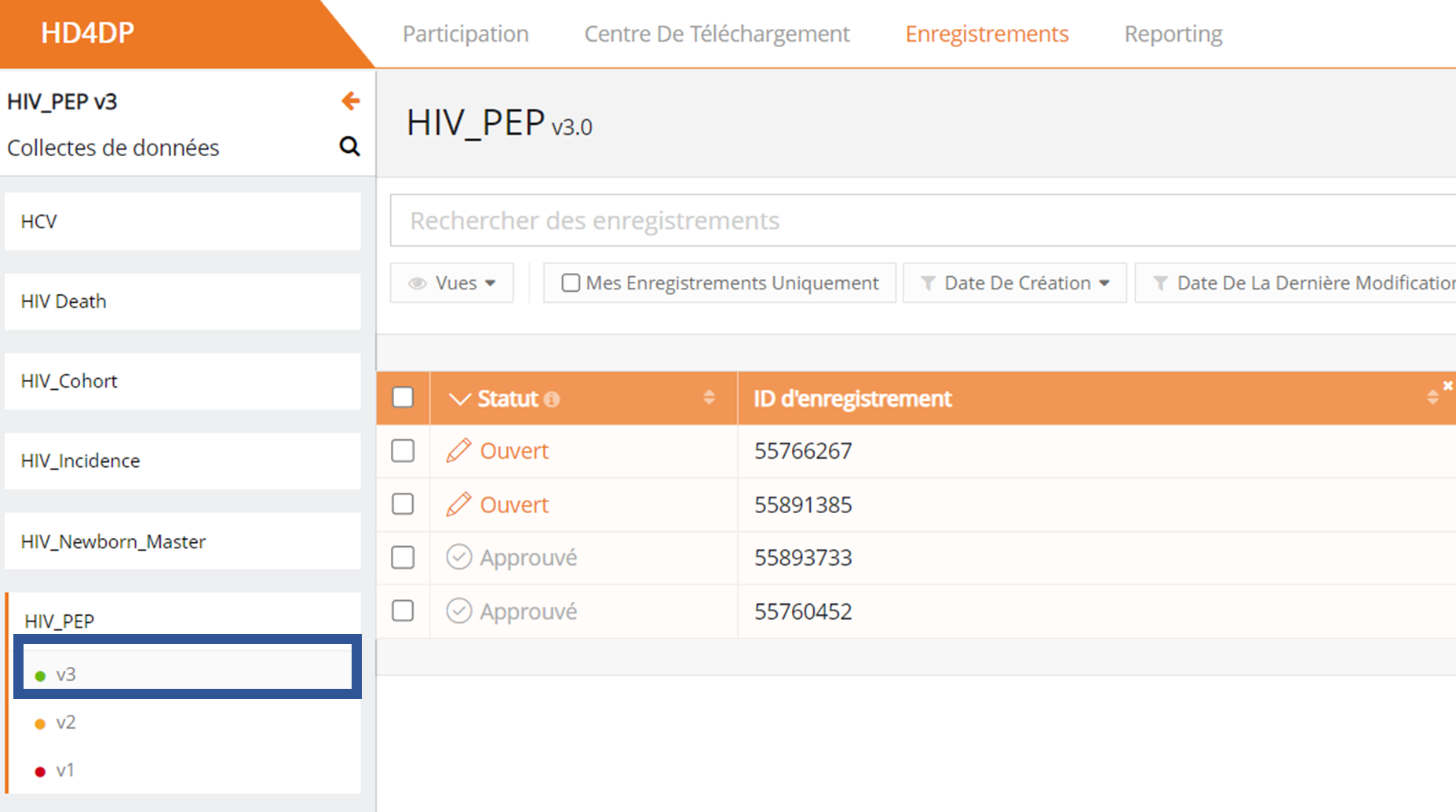 Modifier un enregistrement dans HD4DP v1