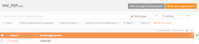 - Sauvegardez l'enregistrement temporairement si nécessaire. Le statut de l'enregistrement sera « Ouvert » pour les enregistrements sauvegardés.