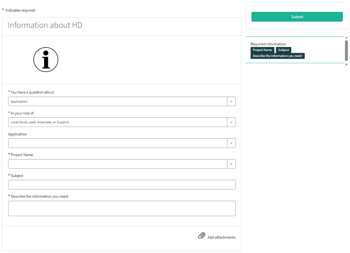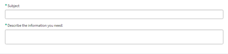 On the right side of the form, the required information elements of the request form are listed. When these fields are completed, these field names will disappear in the "required information" box.