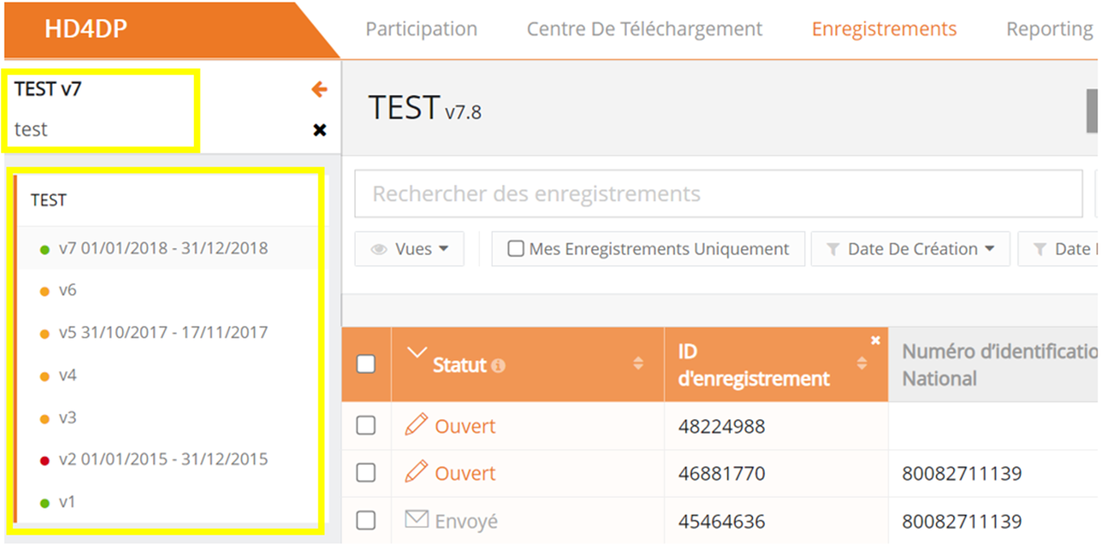 - Sélectionnez la bonne version du registre. En cas de versions/périodes différentes, sélectionnez celle qui a la puce verte.
