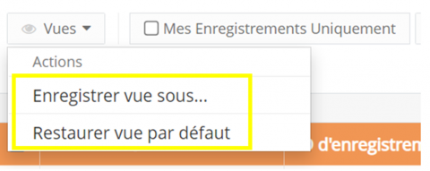 Pour chaque registre, le chercheur a défini une vue par défaut qui consiste en un ensemble de colonnes. Pour afficher cet ensemble de colonnes, cliquez sur 'Restaurer vue par défaut' comme illustré ci-dessous.