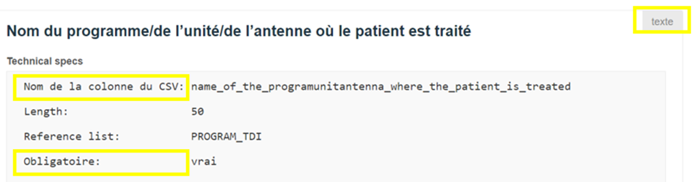 - Obligatoire : 'vrai' signifie que le champ est obligatoire et qu'il doit être présent dans l'extrait .csv