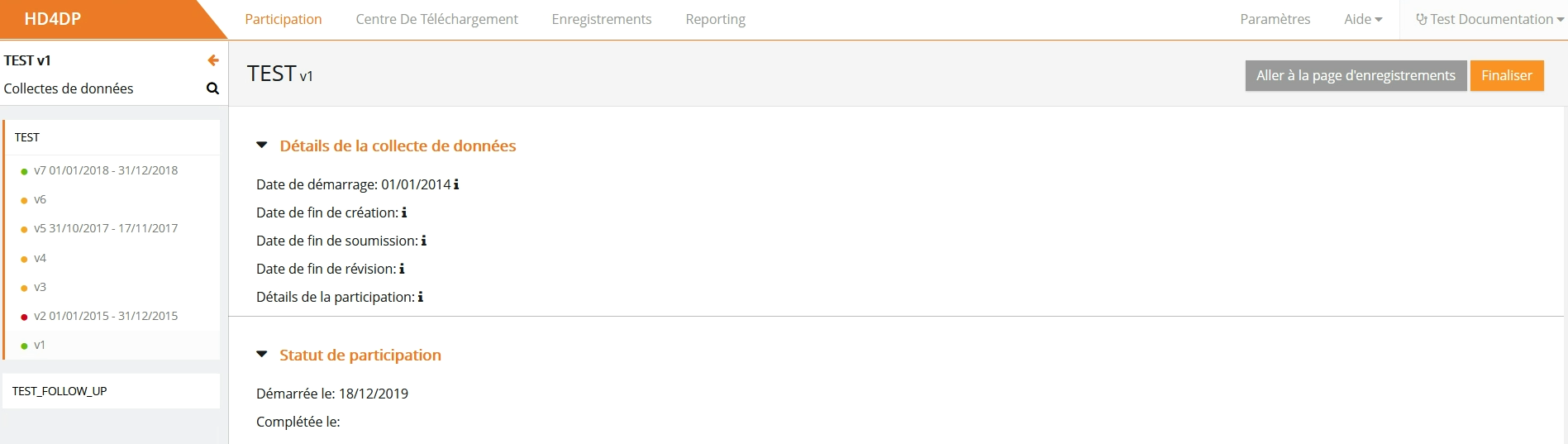 - La date de début dans le status de participation sera mise à jour et l'accès à la nouvelle version est terminé et l'utilisateur peut retourner à la section Enregistrements: