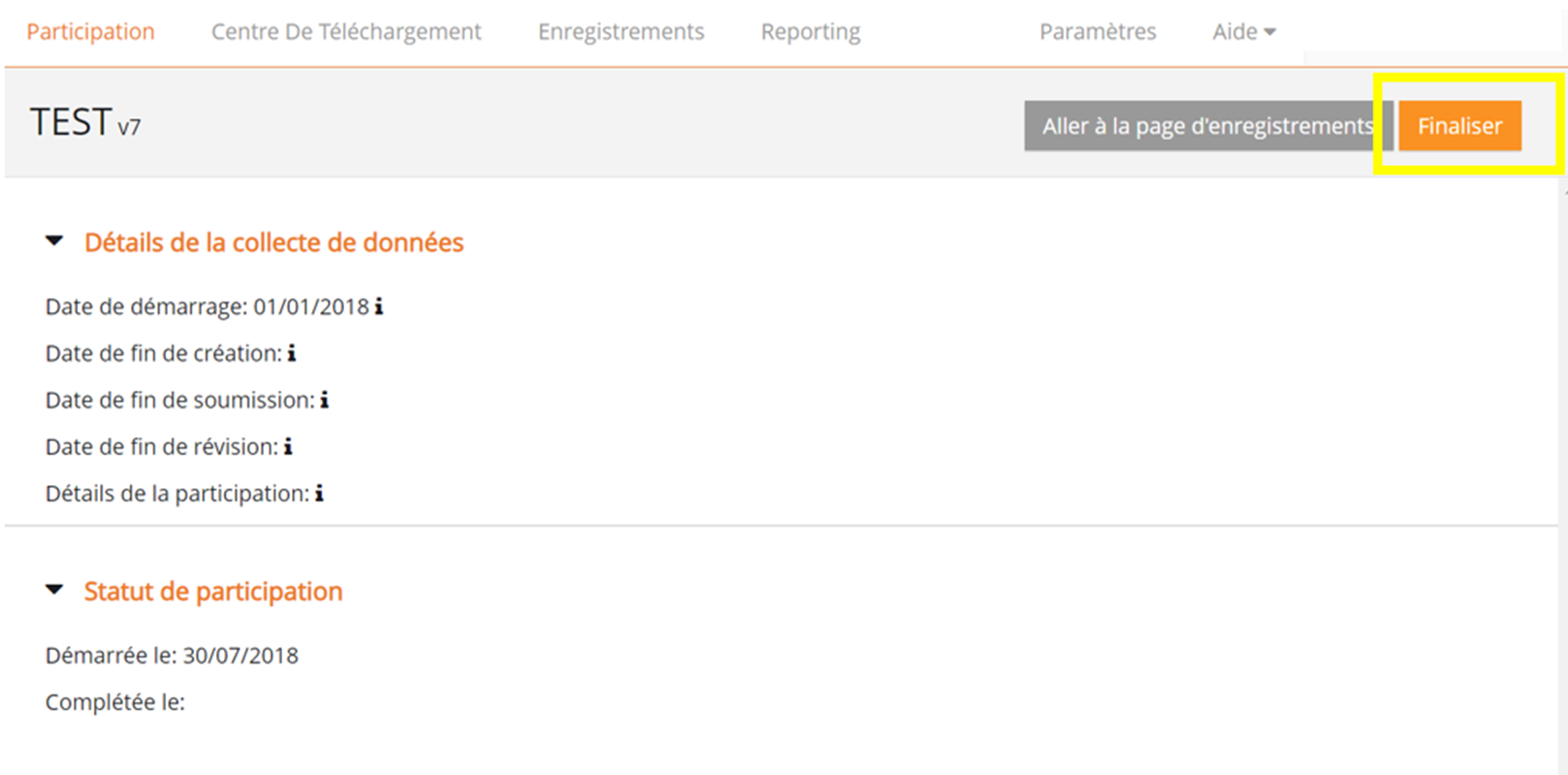 Parfois, des données supplémentaires sont demandées par le chercheur. Ces données doivent être complétées avant d'utiliser le bouton ou le lien "finaliser".
