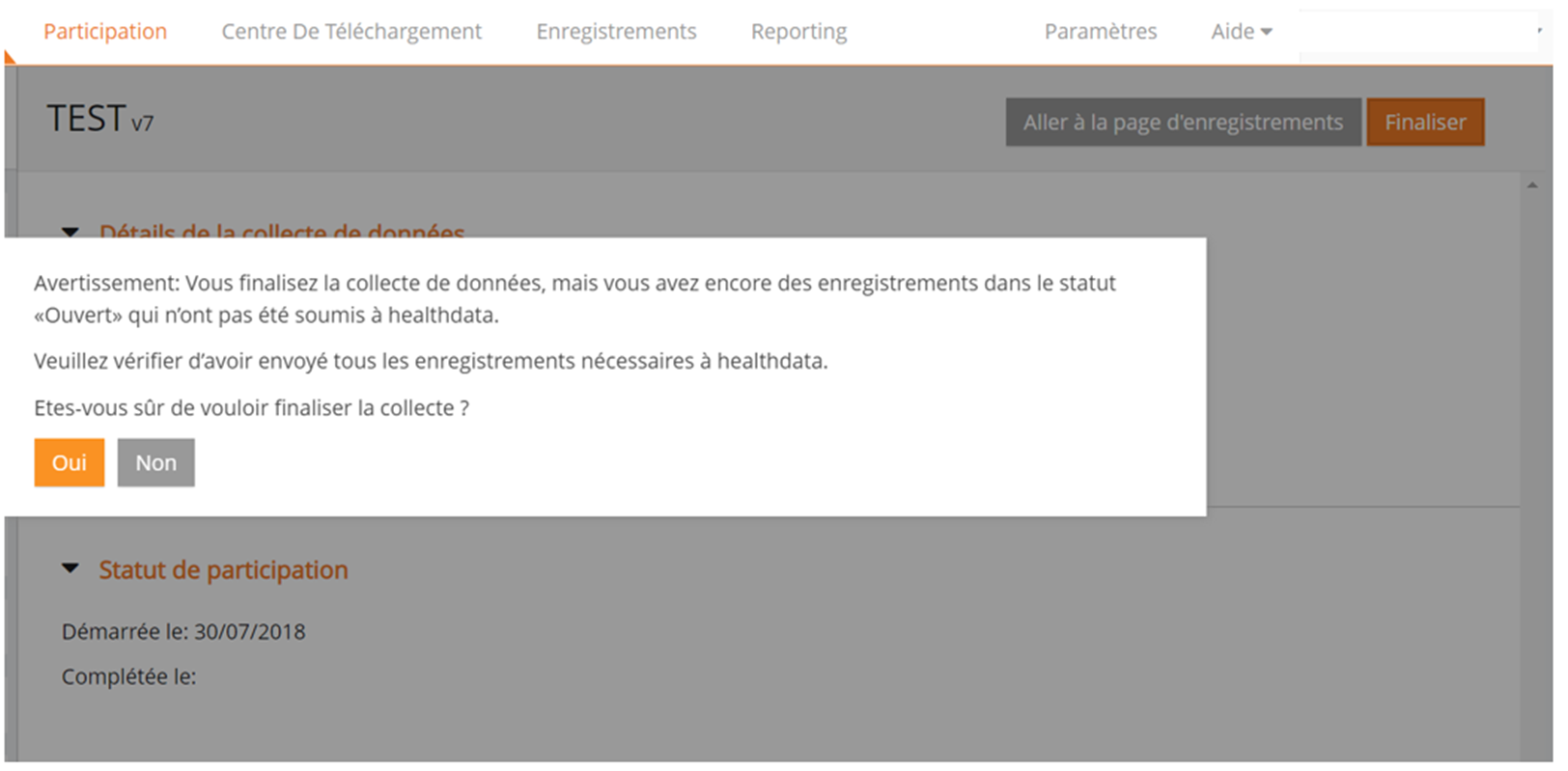 Après avoir sélectionné le bouton "finaliser", le chercheur sera notifié.