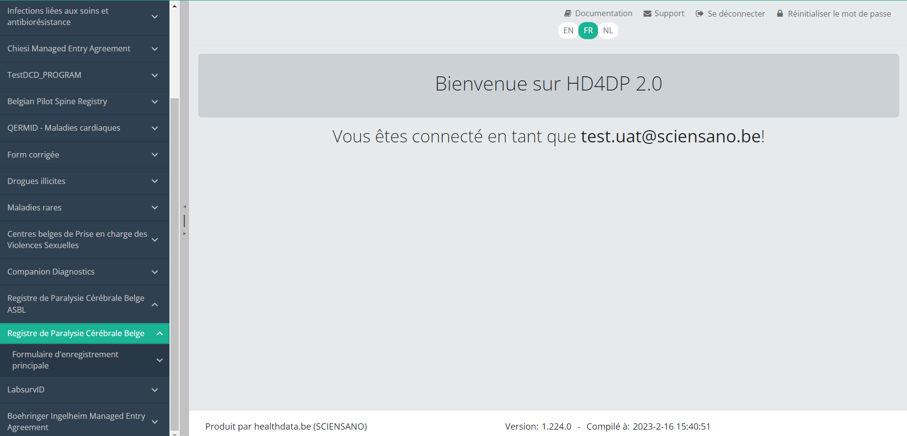 Cette documentation est encore en construction. Nous essayons de présenter les informations aussi correctes, complètes et aussi claires que possible. Cependant, si vous voyez un élément dans la documentation qui est incorrect, ne correspond pas à votre expérience ou nécessite des éclaircissements supplémentaires, veuillez créer ticket support via notre portail (https://healthdatabe.atlassian.net/servicedesk/customer/portals) ou nous envoyer un e-mail à support.healthdata@sciensano.be pour signaler ce problème de documentation. N'oubliez pas d'inclure l'URL ou l'adresse Web de la page avec le problème de documentation. Nous ajusterons ensuite la documentation. Merci!
