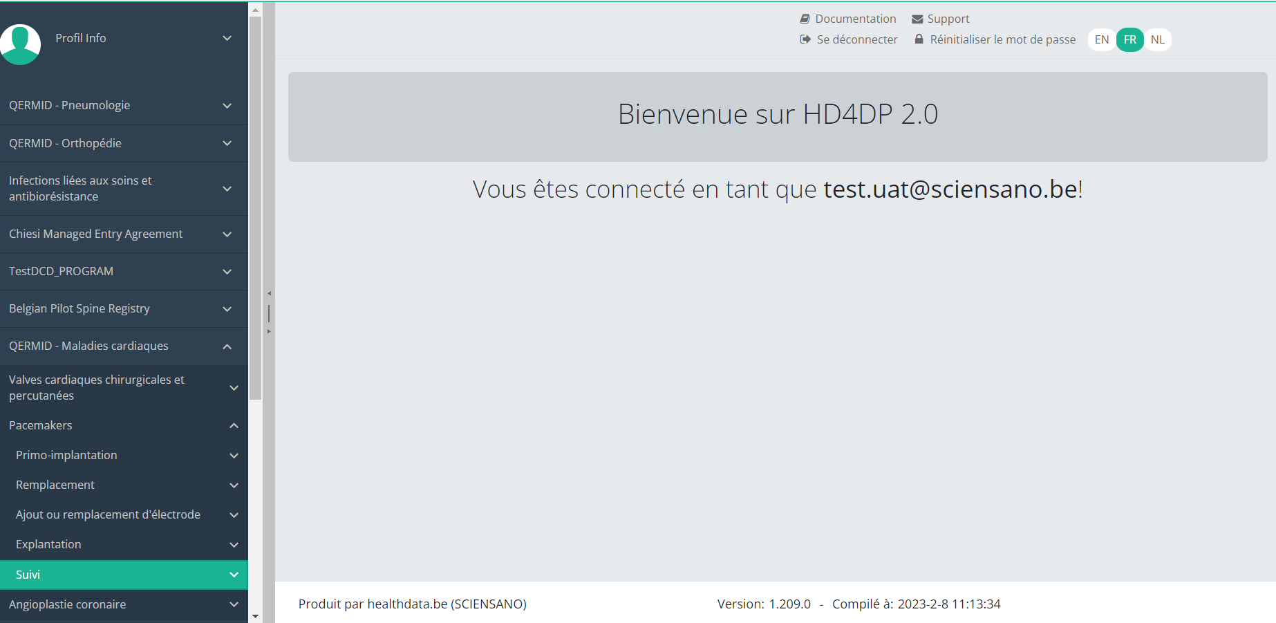 Cette documentation est encore en construction. Nous essayons de présenter les informations aussi correctes, complètes et aussi claires que possible. Cependant, si vous voyez un élément dans la documentation qui est incorrect, ne correspond pas à votre expérience ou nécessite des éclaircissements supplémentaires, veuillez créer ticket support via notre portail (https://healthdatabe.atlassian.net/servicedesk/customer/portals) ou nous envoyer un e-mail à support.healthdata@sciensano.be pour signaler ce problème de documentation. N'oubliez pas d'inclure l'URL ou l'adresse Web de la page avec le problème de documentation. Nous ajusterons ensuite la documentation. Merci!
