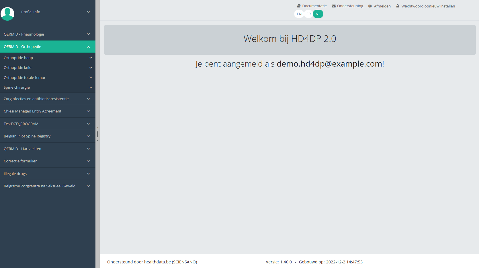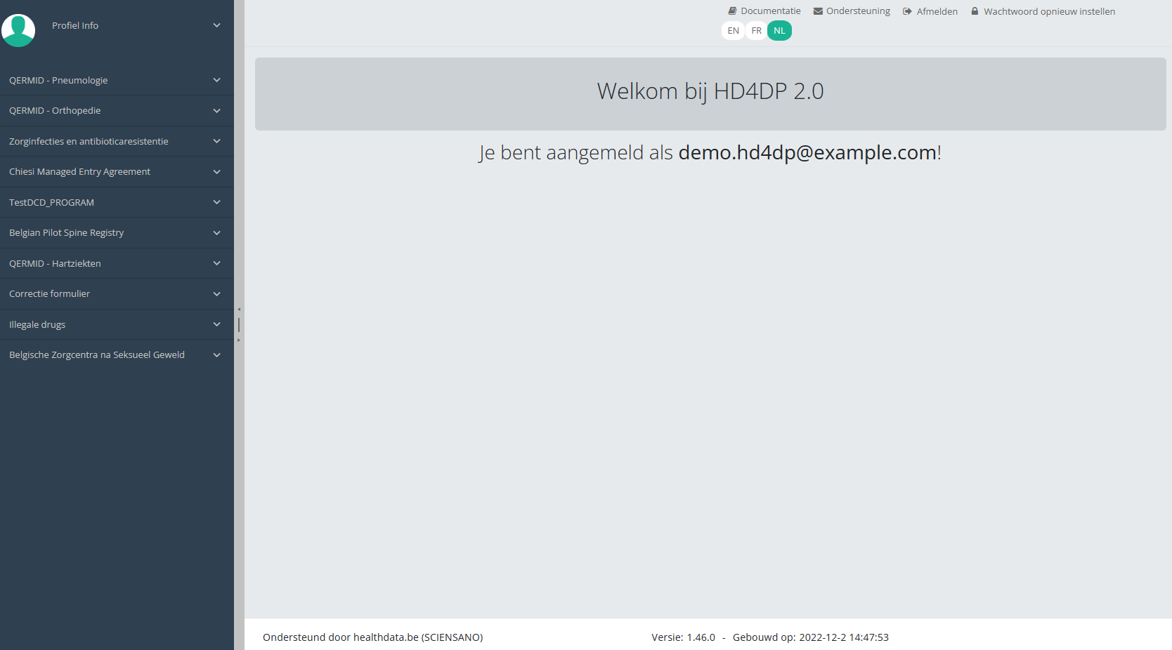 Deze documentatie wordt regelmatig bijgewerkt. We proberen de informatie zo correct, volledig en zo duidelijk mogelijk weer te geven. Als u desondanks iets in de documentatie ziet dat niet correct is, niet overeenkomt met uw ervaring, of verdere verduidelijking vereist, maak dan een support ticket via ons portaal (https://healthdatabe.atlassian.net/servicedesk/customer/portals) of stuur ons een e-mail via support.healthdata@sciensano.be om dit documentatieprobleem te melden. Vergeet niet de URL of het webadres van de pagina met het documentatieprobleem te vermelden. Wij zullen de documentatie dan aanpassen. Bedankt!