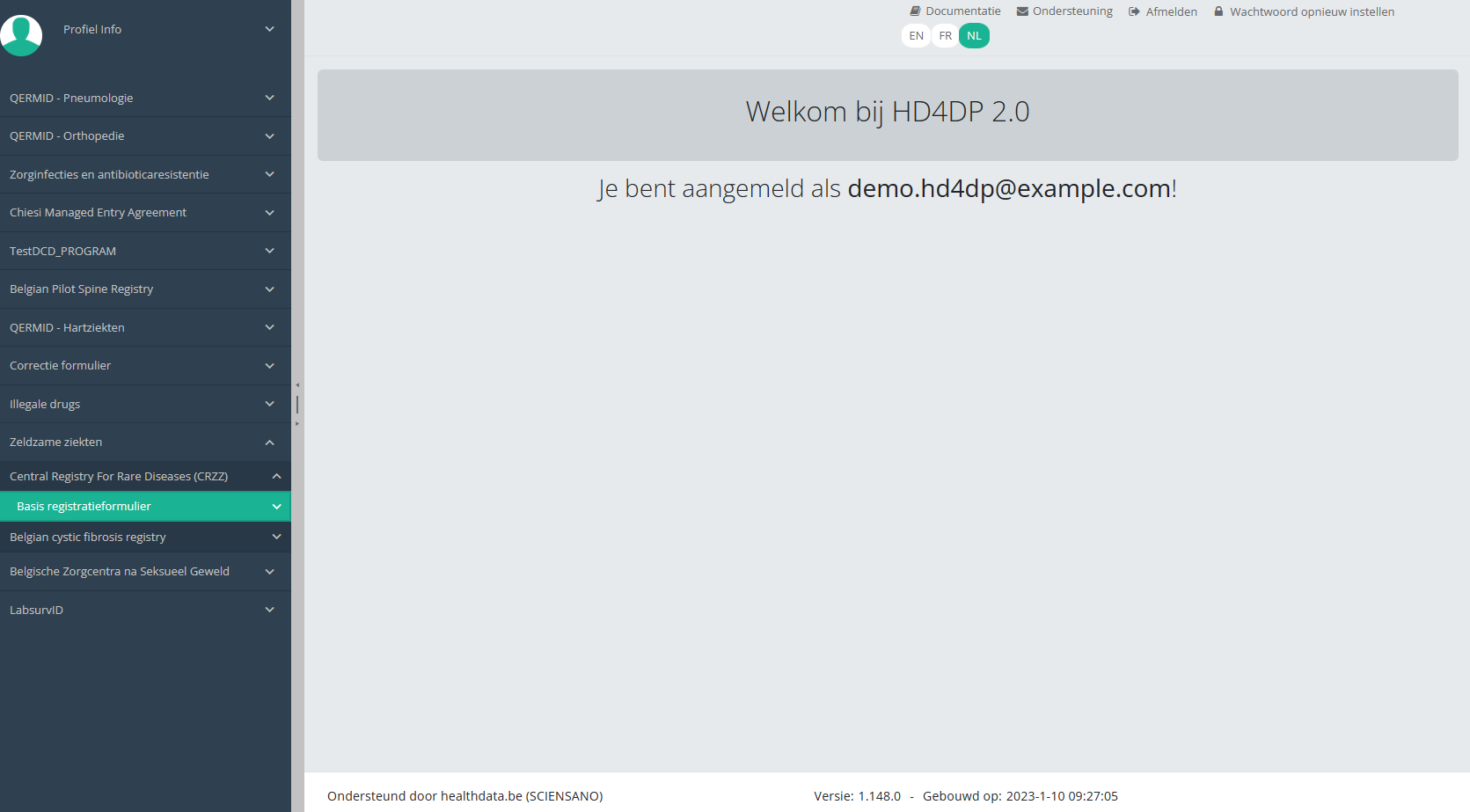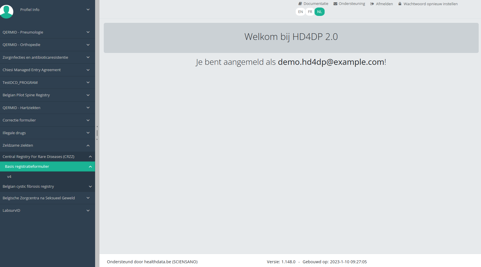 Deze documentatie wordt regelmatig bijgewerkt. We proberen de informatie zo correct, volledig en zo duidelijk mogelijk weer te geven. Als u desondanks iets in de documentatie ziet dat niet correct is, niet overeenkomt met uw ervaring, of verdere verduidelijking vereist, maak dan een support ticket via ons portaal (https://healthdatabe.atlassian.net/servicedesk/customer/portals) of stuur ons een e-mail via support.healthdata@sciensano.be om dit documentatieprobleem te melden. Vergeet niet de URL of het webadres van de pagina met het documentatieprobleem te vermelden. Wij zullen de documentatie dan aanpassen. Bedankt!