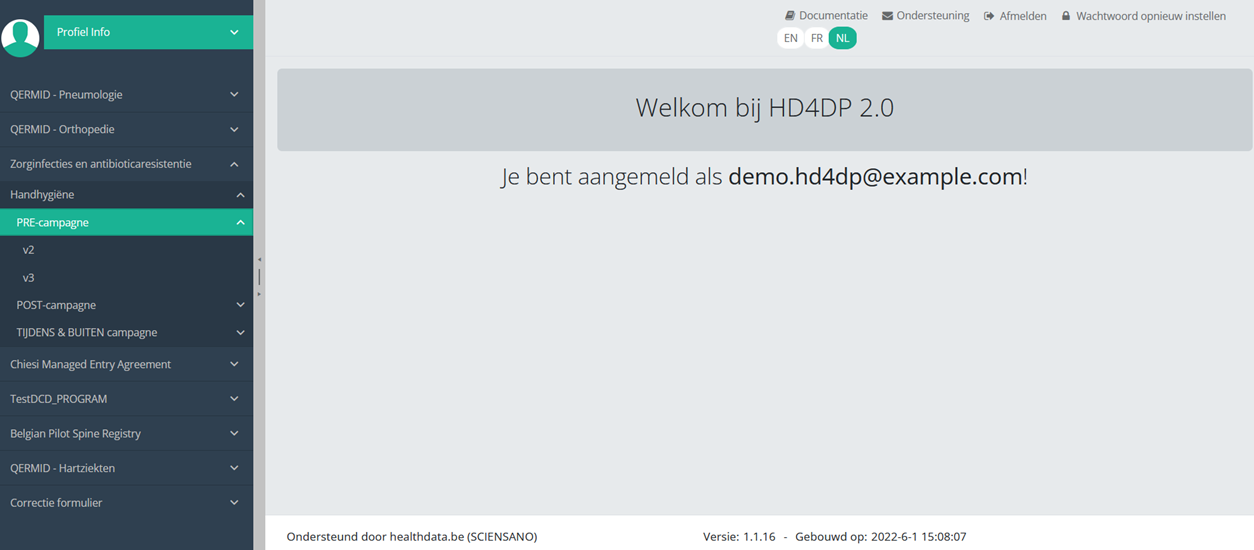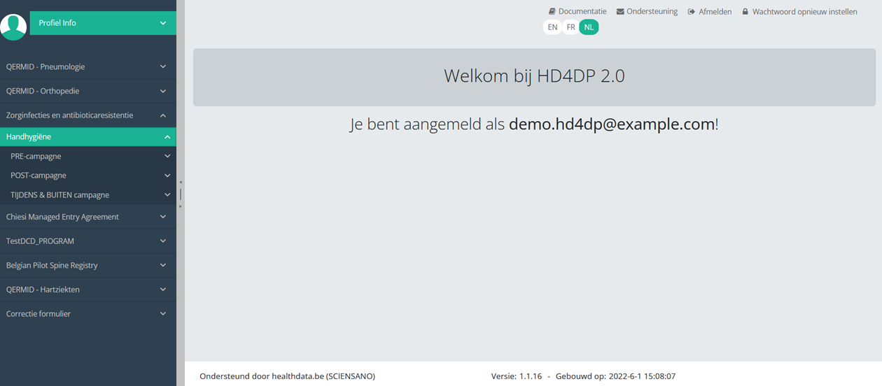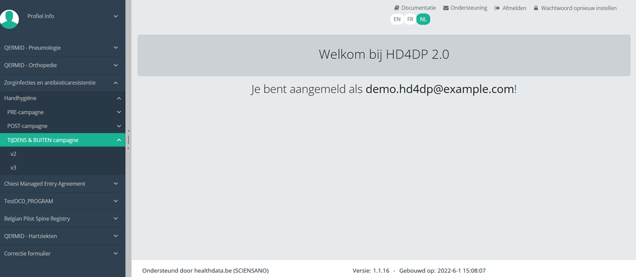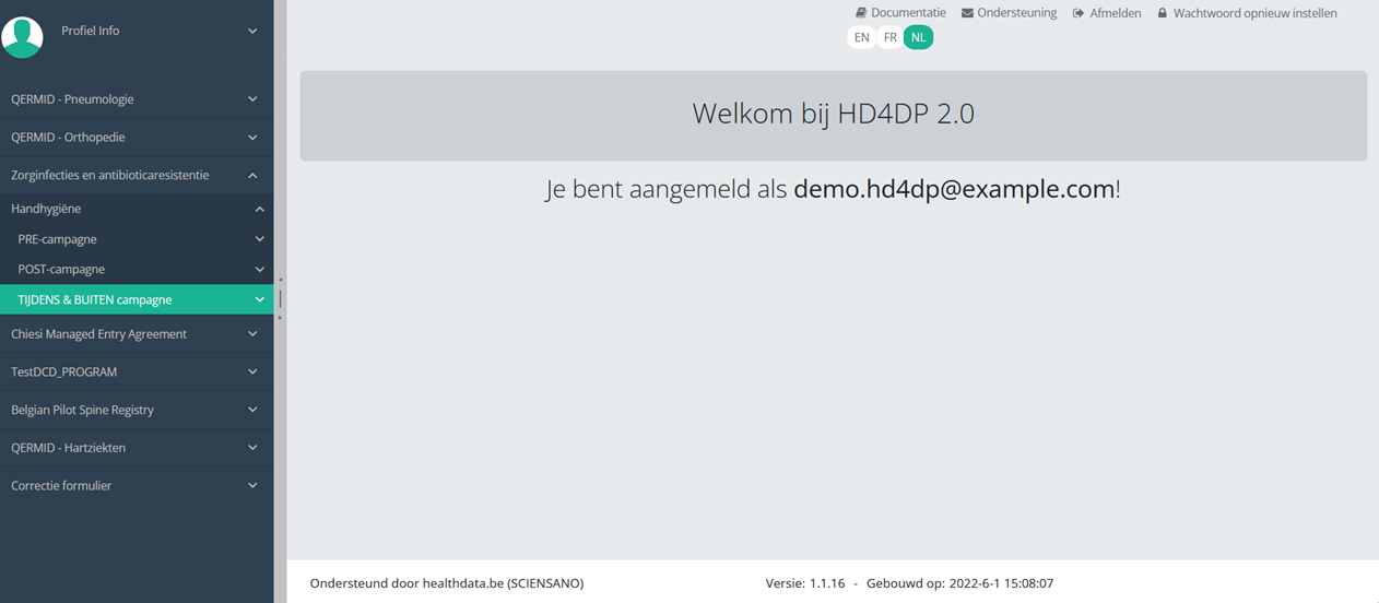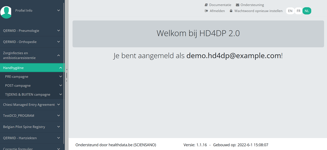 Deze documentatie wordt regelmatig bijgewerkt. We proberen de informatie zo correct, volledig en zo duidelijk mogelijk weer te geven. Als u desondanks iets in de documentatie ziet dat niet correct is, niet overeenkomt met uw ervaring, of verdere verduidelijking vereist, maak dan een support ticket via ons portaal (https://healthdatabe.atlassian.net/servicedesk/customer/portals) of stuur ons een e-mail via support.healthdata@sciensano.be om dit documentatieprobleem te melden. Vergeet niet de URL of het webadres van de pagina met het documentatieprobleem te vermelden. Wij zullen de documentatie dan aanpassen. Bedankt!