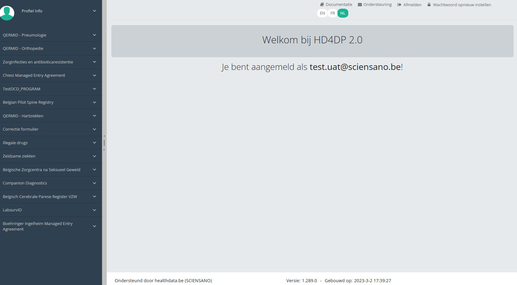 Deze documentatie wordt regelmatig bijgewerkt. We proberen de informatie zo correct, volledig en zo duidelijk mogelijk weer te geven. Als u desondanks iets in de documentatie ziet dat niet correct is, niet overeenkomt met uw ervaring, of verdere verduidelijking vereist, maak dan een support ticket via ons portaal (https://healthdatabe.atlassian.net/servicedesk/customer/portals) of stuur ons een e-mail via support.healthdata@sciensano.be om dit documentatieprobleem te melden. Vergeet niet de URL of het webadres van de pagina met het documentatieprobleem te vermelden. Wij zullen de documentatie dan aanpassen. Bedankt!