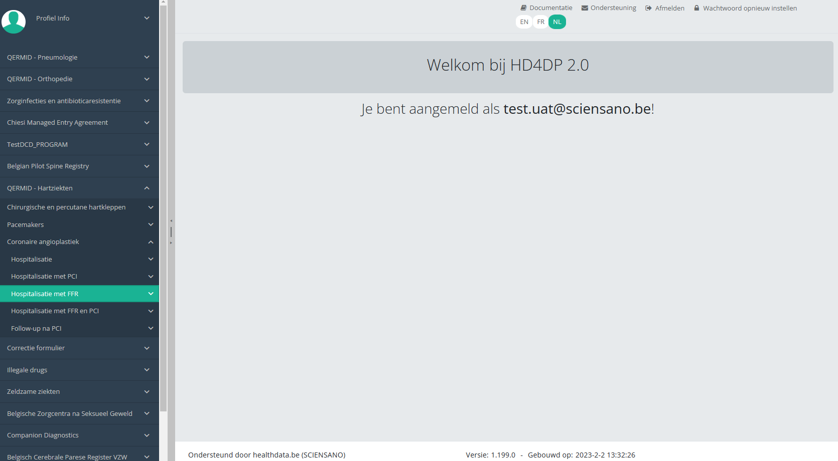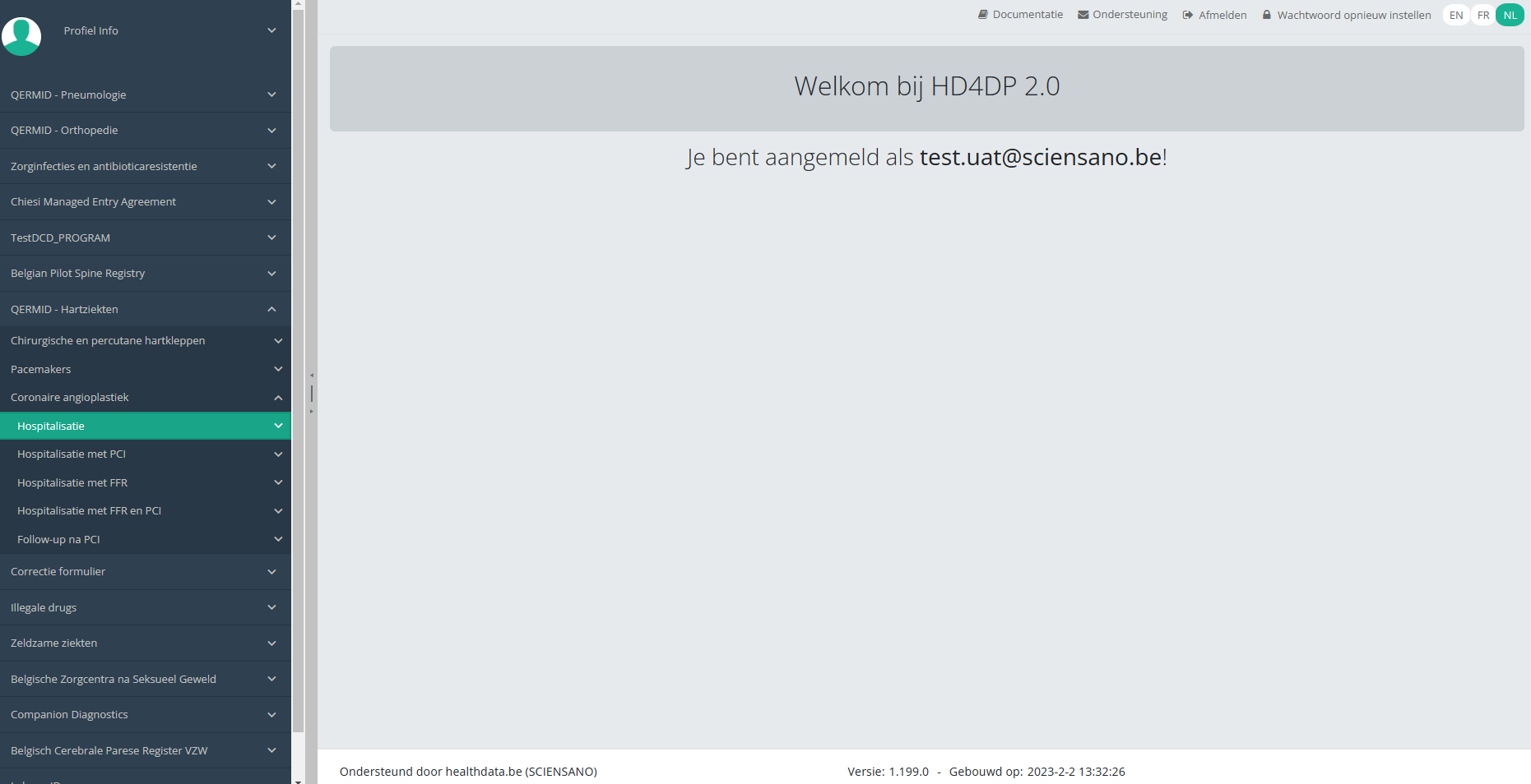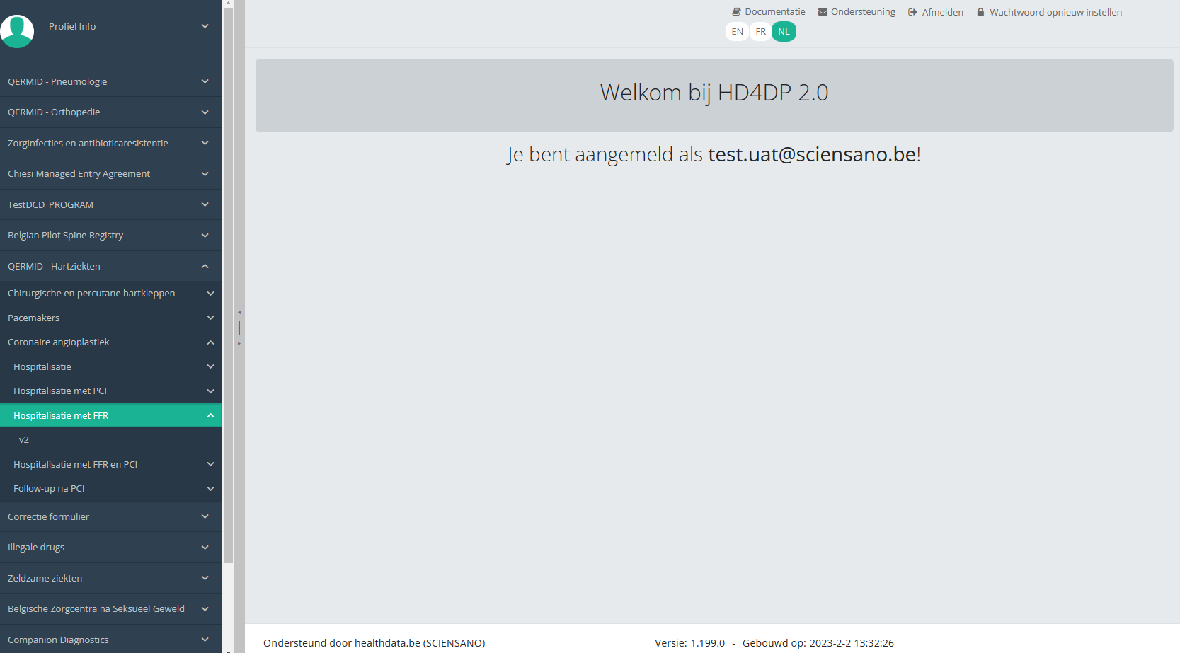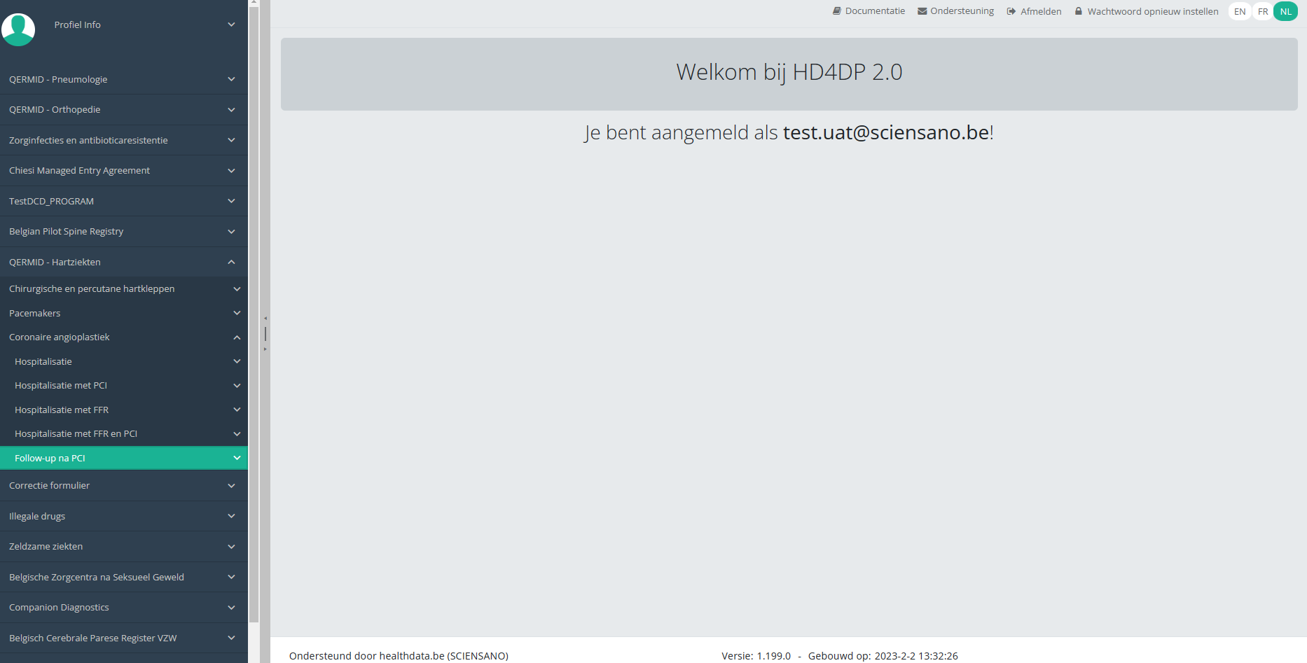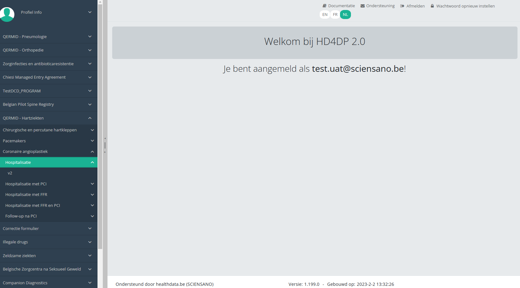 Deze documentatie wordt regelmatig bijgewerkt. We proberen de informatie zo correct, volledig en zo duidelijk mogelijk weer te geven. Als u desondanks iets in de documentatie ziet dat niet correct is, niet overeenkomt met uw ervaring, of verdere verduidelijking vereist, maak dan een support ticket via ons portaal (https://healthdatabe.atlassian.net/servicedesk/customer/portals) of stuur ons een e-mail via support.healthdata@sciensano.be om dit documentatieprobleem te melden. Vergeet niet de URL of het webadres van de pagina met het documentatieprobleem te vermelden. Wij zullen de documentatie dan aanpassen. Bedankt!
