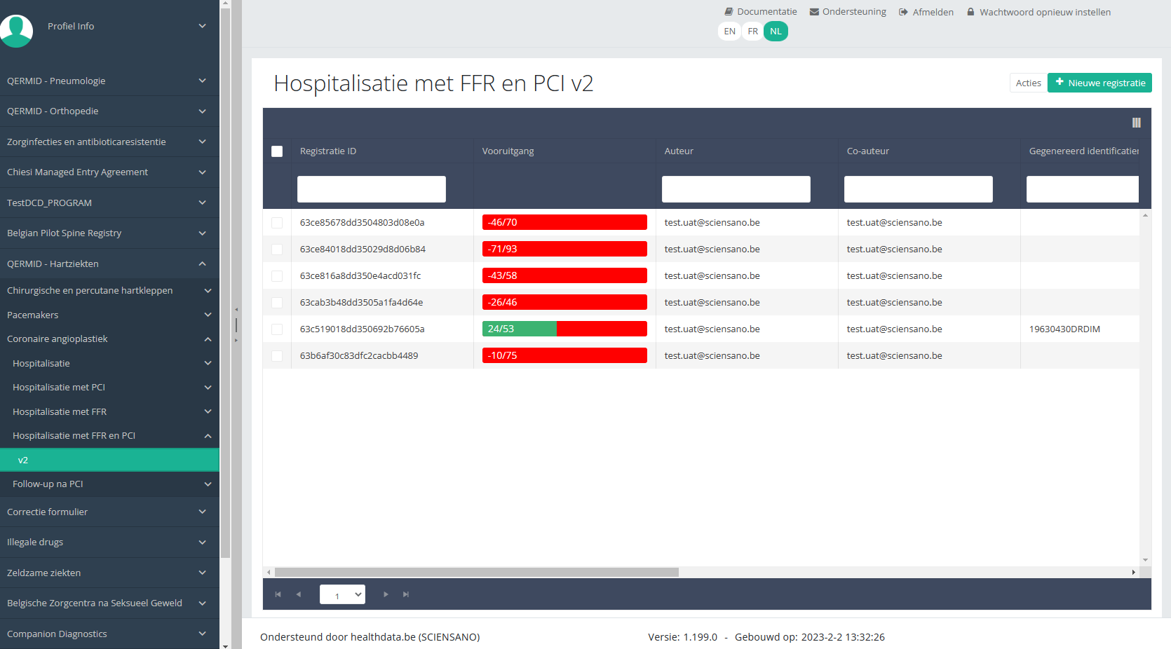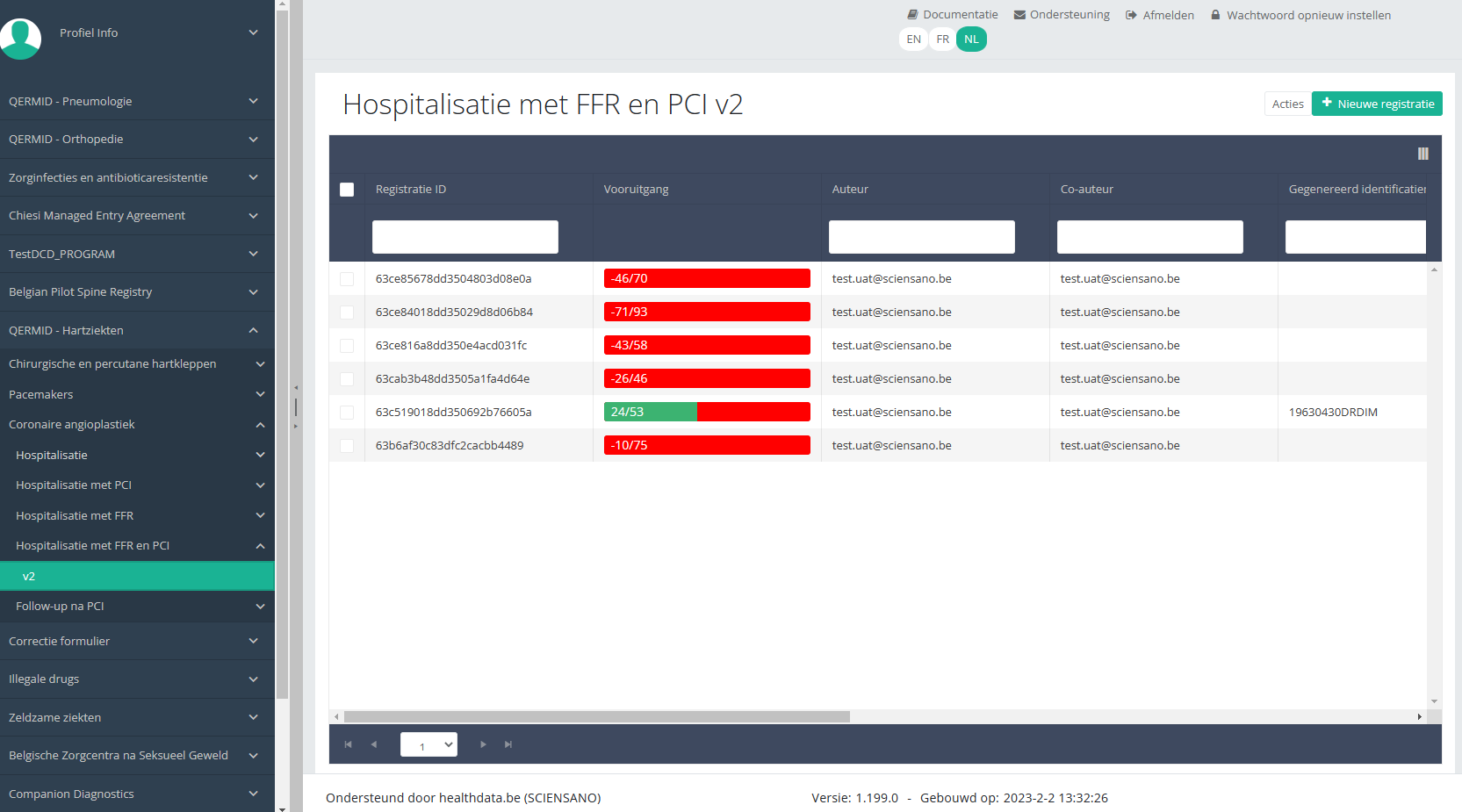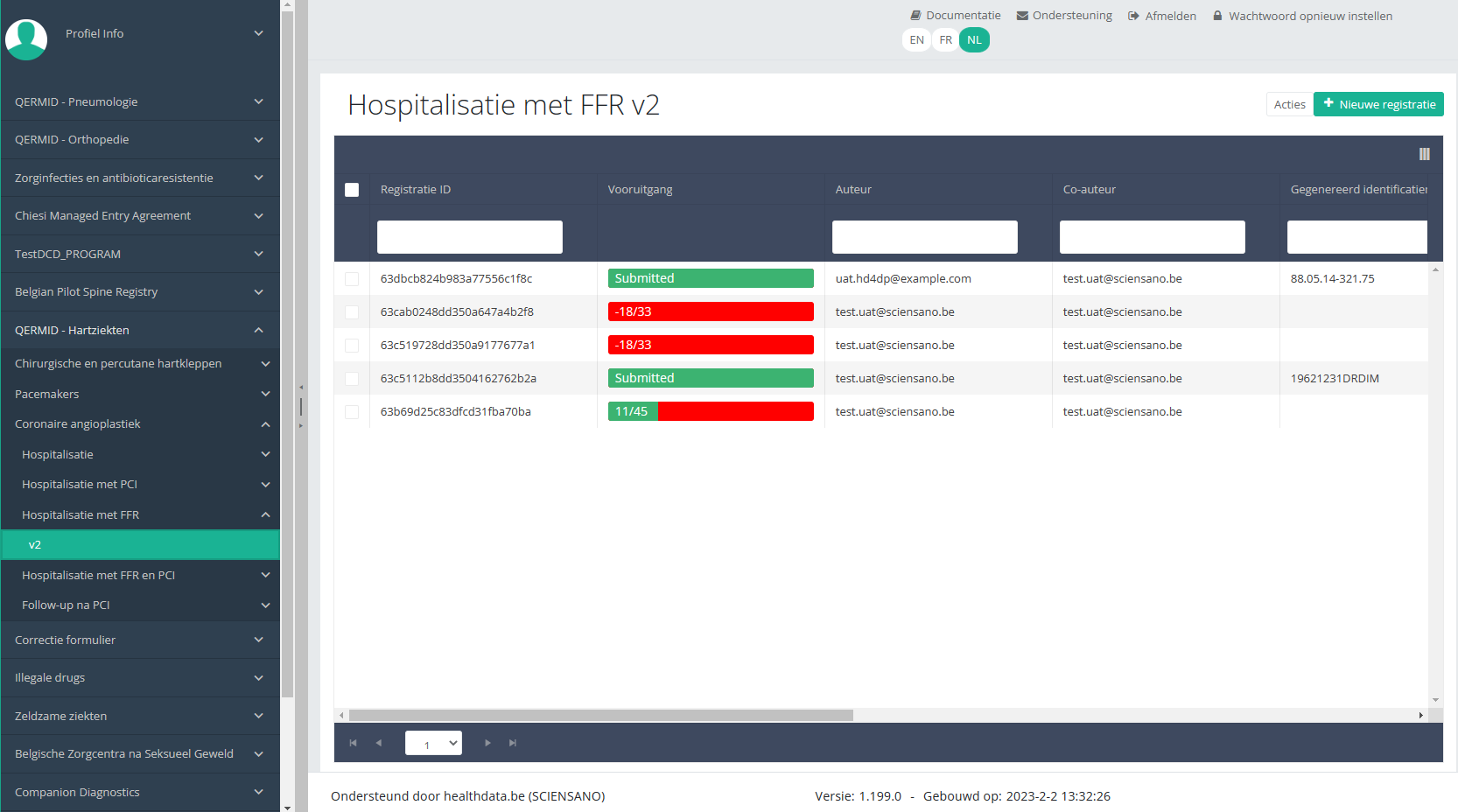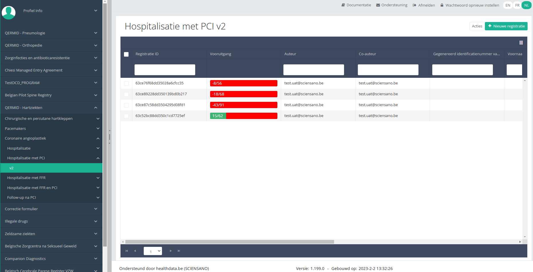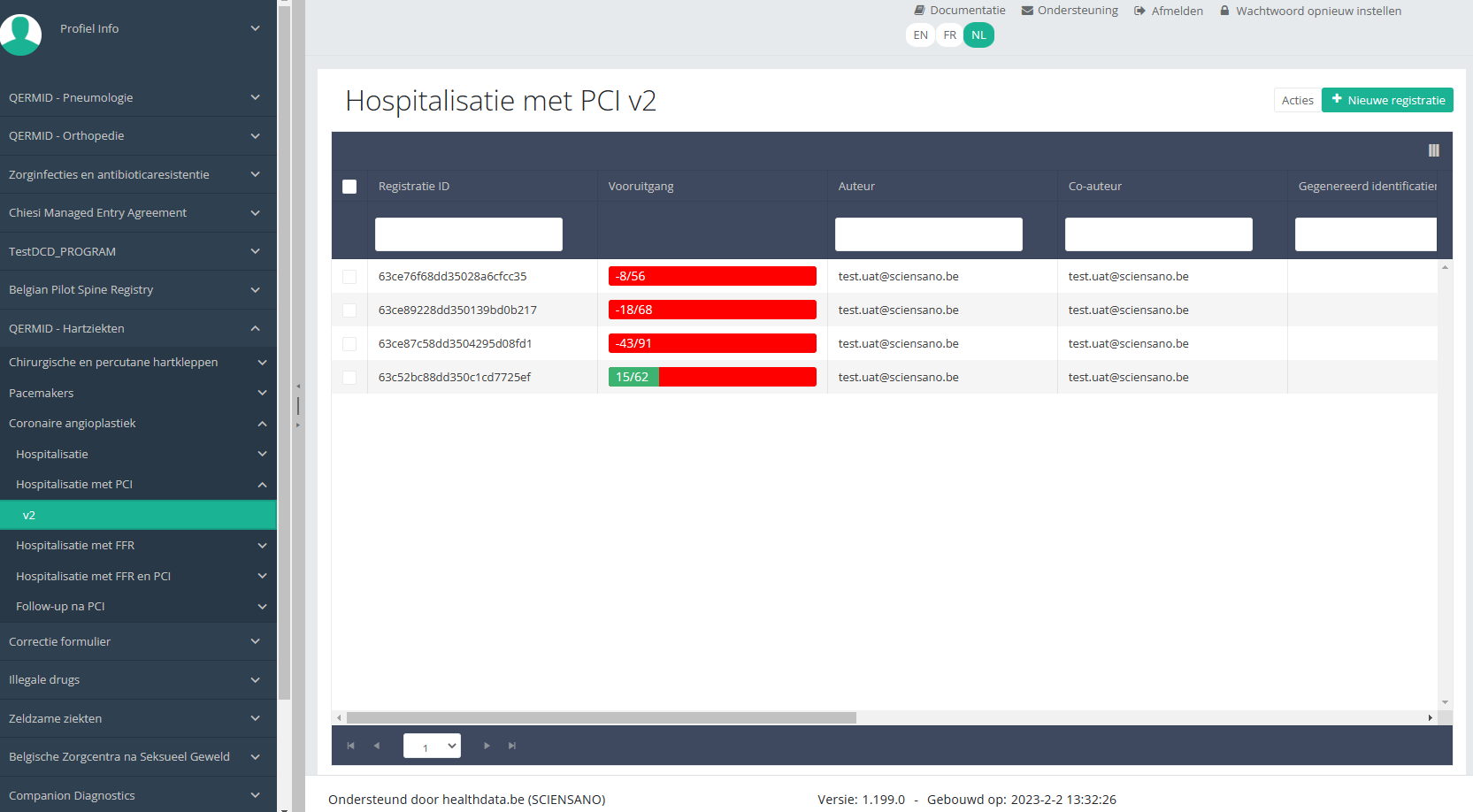 Deze documentatie wordt regelmatig bijgewerkt. We proberen de informatie zo correct, volledig en zo duidelijk mogelijk weer te geven. Als u desondanks iets in de documentatie ziet dat niet correct is, niet overeenkomt met uw ervaring, of verdere verduidelijking vereist, maak dan een support ticket via ons portaal (https://healthdatabe.atlassian.net/servicedesk/customer/portals) of stuur ons een e-mail via support.healthdata@sciensano.be om dit documentatieprobleem te melden. Vergeet niet de URL of het webadres van de pagina met het documentatieprobleem te vermelden. Wij zullen de documentatie dan aanpassen. Bedankt!