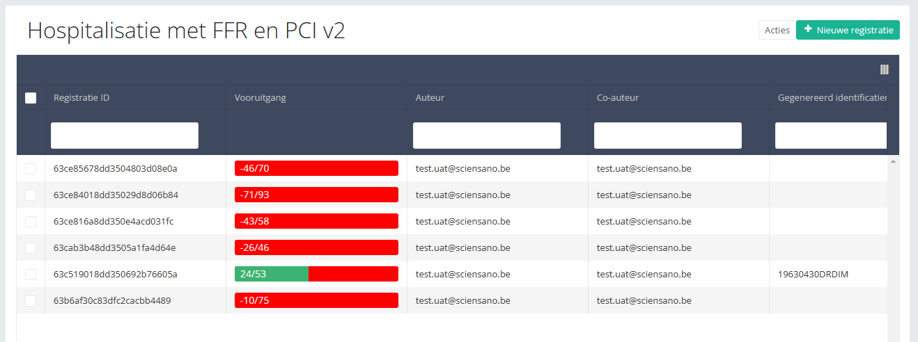 Below documentation contains generic example screens with the sole purpose to demonstrate how the process looks like. In the subsequent screens the desired ANGIO register (Hospitalisation, Hospitalisation with PCI, Hospitalisation with FFR, Hospitalsation with FFR and PCI, Follow-up after PCI) needs to be selected.