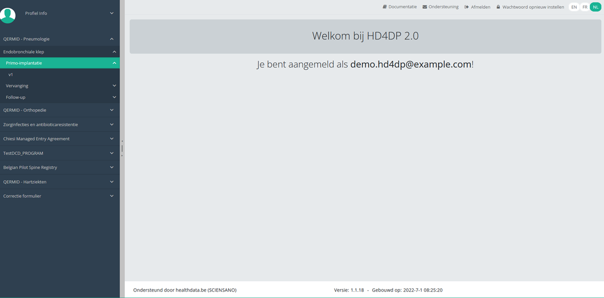 Algemene beschrijving van de applicatie HD4DP v2De HD4DP versie 2.x Local is een elektronisch gegevensregistratiesysteem (EDC): een geautomatiseerd systeem dat is ontworpen voor het verzamelen van klinische gegevens in elektronisch formaat voor gebruik in onderzoek ter ondersteuning van het volksgezondheidsbeleid. HD4DP (Health Data for Data providers) vervangt de traditionele op papier, spreadsheet, e-mail gebaseerde methode voor het verzamelen van gegevens en de wildgroei aan websites om het verzamelen van gegevens te stroomlijnen en de tijd tot analyse en rapportage te versnellen.