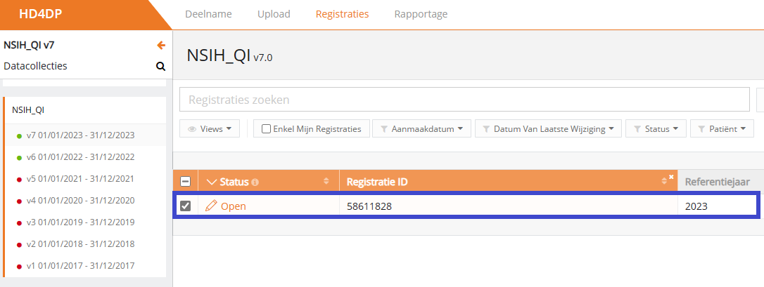 Een registratie verwijderen in HD4DP v1Alleen registraties met de status 'open' en 'correcties nodig' kunnen worden verwijderd.
