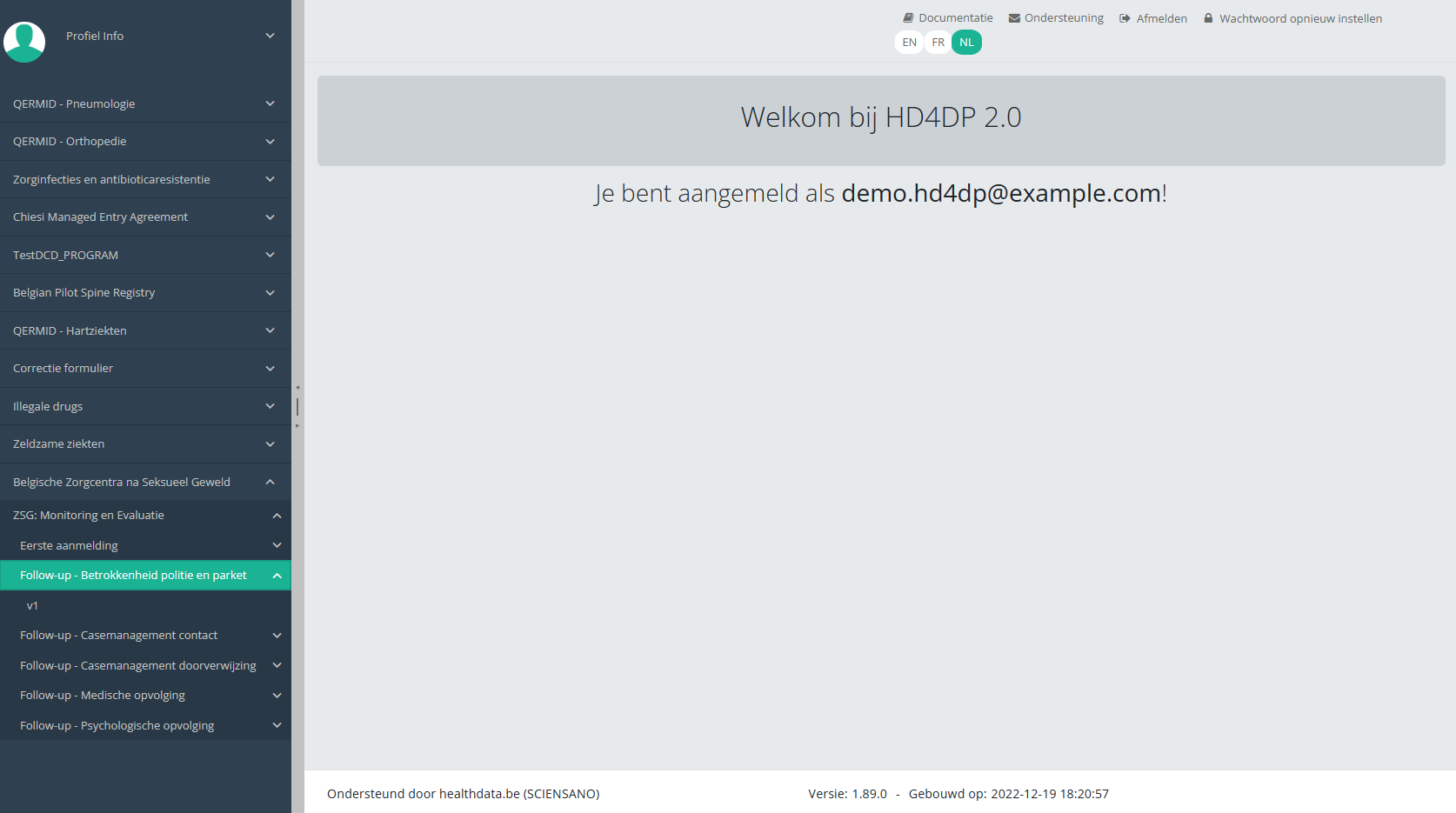 Algemene beschrijving van de applicatie HD4DP v2De HD4DP versie 2.x Local is een elektronisch gegevensregistratiesysteem (EDC): een geautomatiseerd systeem dat is ontworpen voor het verzamelen van klinische gegevens in elektronisch formaat voor gebruik in onderzoek ter ondersteuning van het volksgezondheidsbeleid. HD4DP (Health Data for Data providers) vervangt de traditionele op papier, spreadsheet, e-mail gebaseerde methode voor het verzamelen van gegevens en de wildgroei aan websites om het verzamelen van gegevens te stroomlijnen en de tijd tot analyse en rapportage te versnellen.