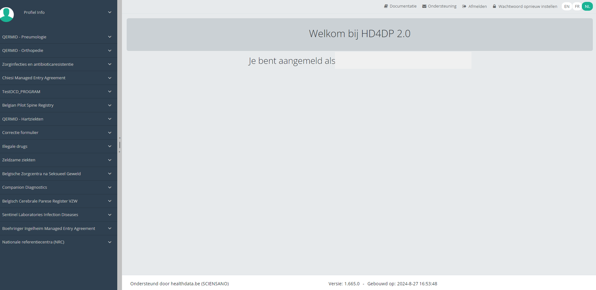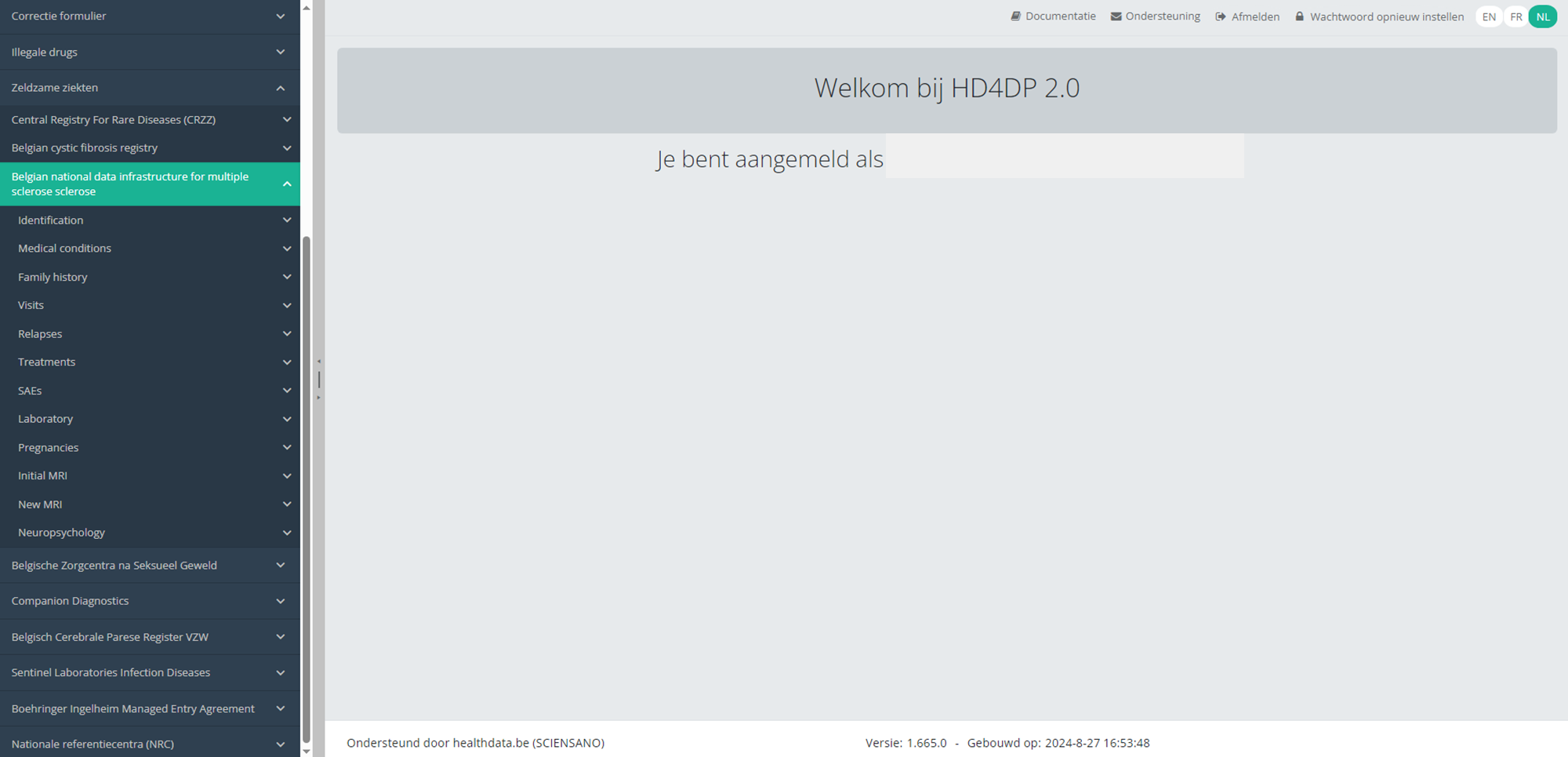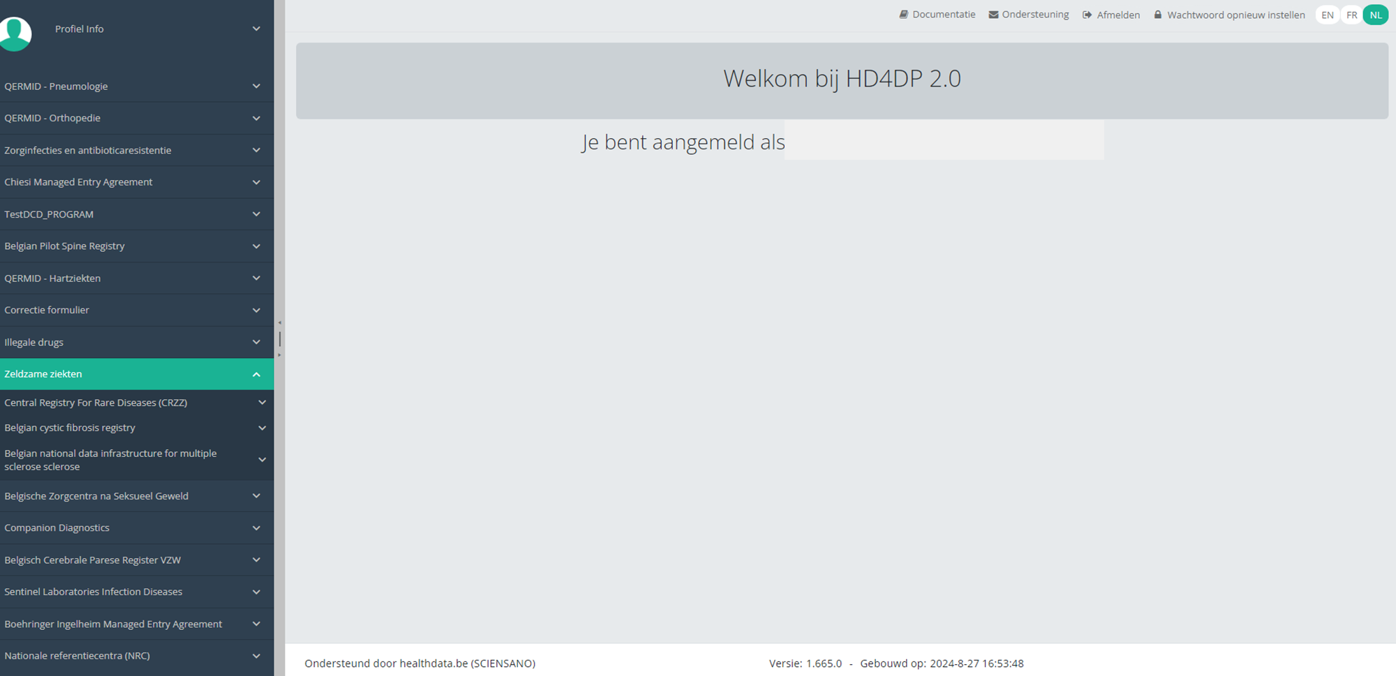 Deze documentatie wordt regelmatig bijgewerkt. We proberen de informatie zo correct, volledig en zo duidelijk mogelijk weer te geven. Als u desondanks iets in de documentatie ziet dat niet correct is, niet overeenkomt met uw ervaring, of verdere verduidelijking vereist, maak dan een support ticket via ons portaal (https://healthdatabe.atlassian.net/servicedesk/customer/portals) of stuur ons een e-mail via support.healthdata@sciensano.be om dit documentatieprobleem te melden. Vergeet niet de URL of het webadres van de pagina met het documentatieprobleem te vermelden. Wij zullen de documentatie dan aanpassen. Bedankt!