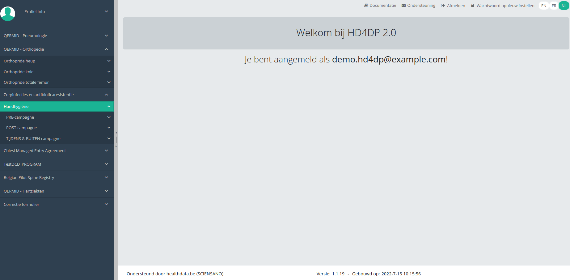 Om een "POST-campagne" registratie bij te werken voor het onderzoeksproject Handhygiëne, selecteer "POST-campagne" in het donkerblauwe linkermenu.